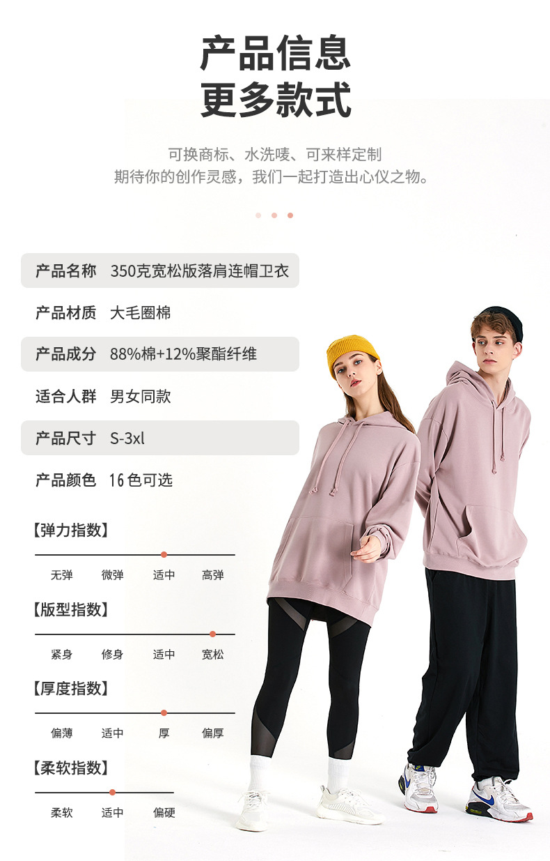 350g 단색 테리 로우 숄더 후드 후드 후드 후드 맞춤형 수업 옷 바지 문화 셔츠 인쇄 로고스토어 가기