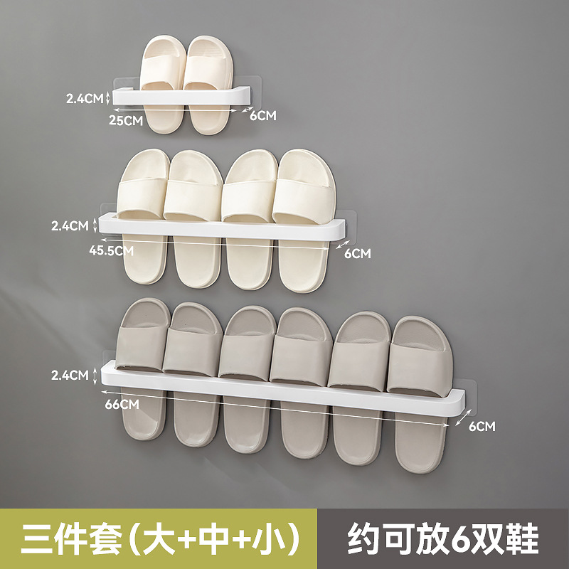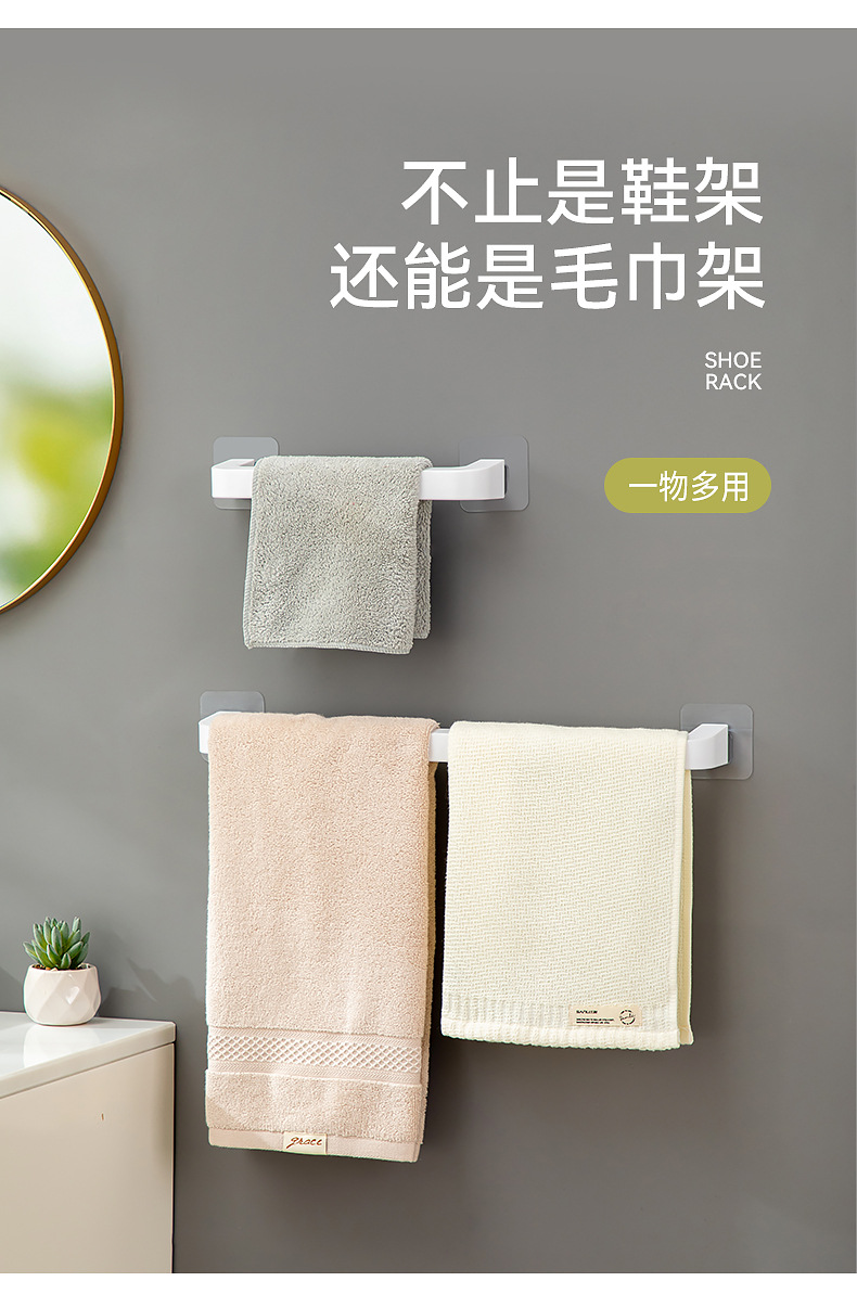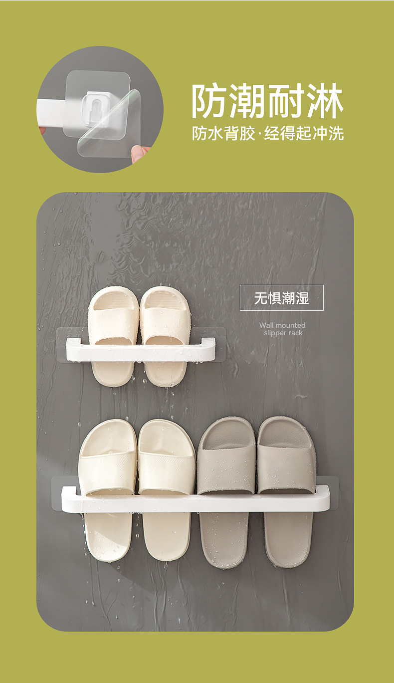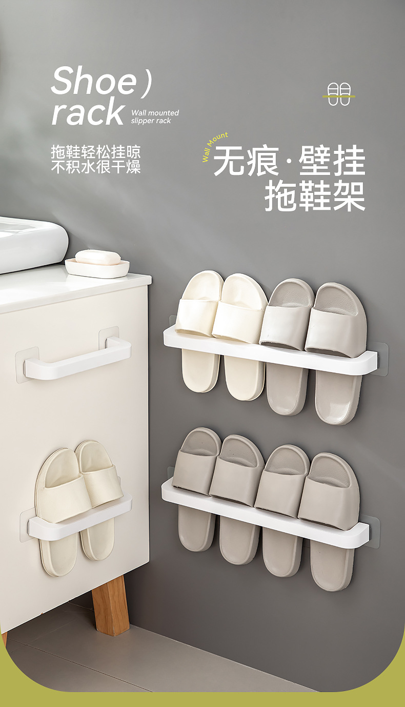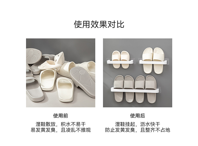 关于塑料制品运输问题:我们会在发出前仔细检查产品完好后再发货,但运输、搬运难免摩擦/磕碰,小概率可能会导致摩擦划痕、白痕等,但这些均不影响产品使用,介意勿拍,谢谢! 浴室壁挂单杆免打孔拖鞋架玄关墙壁侧面挂壁多功能鞋子收纳置物架