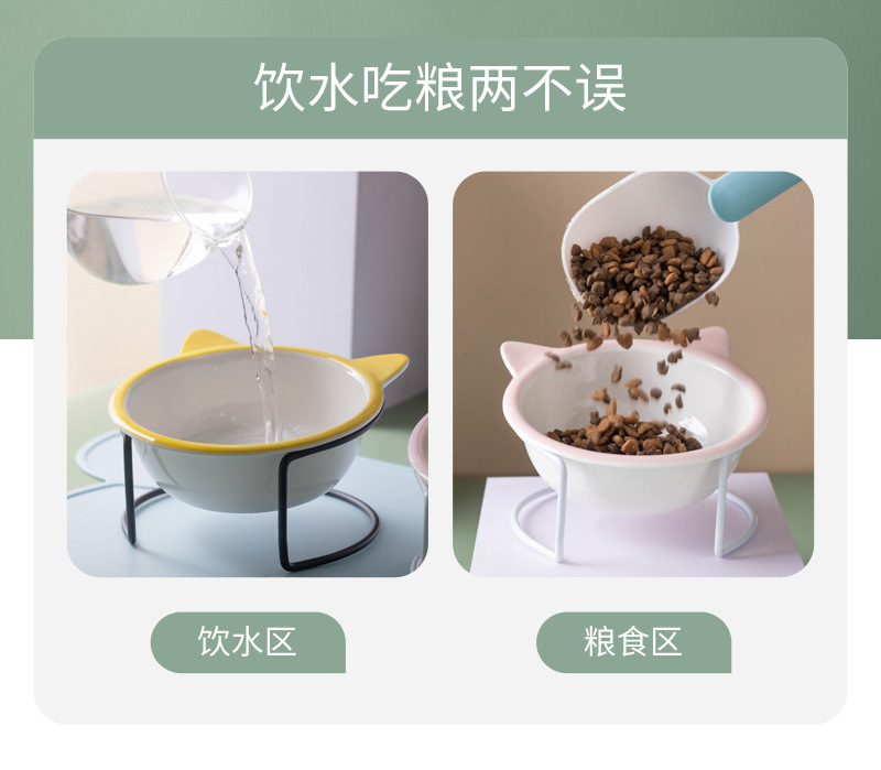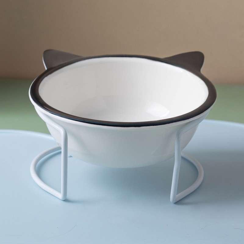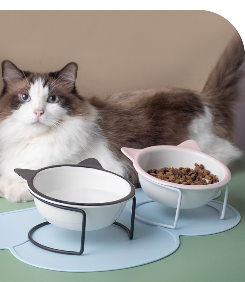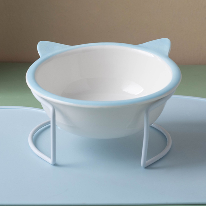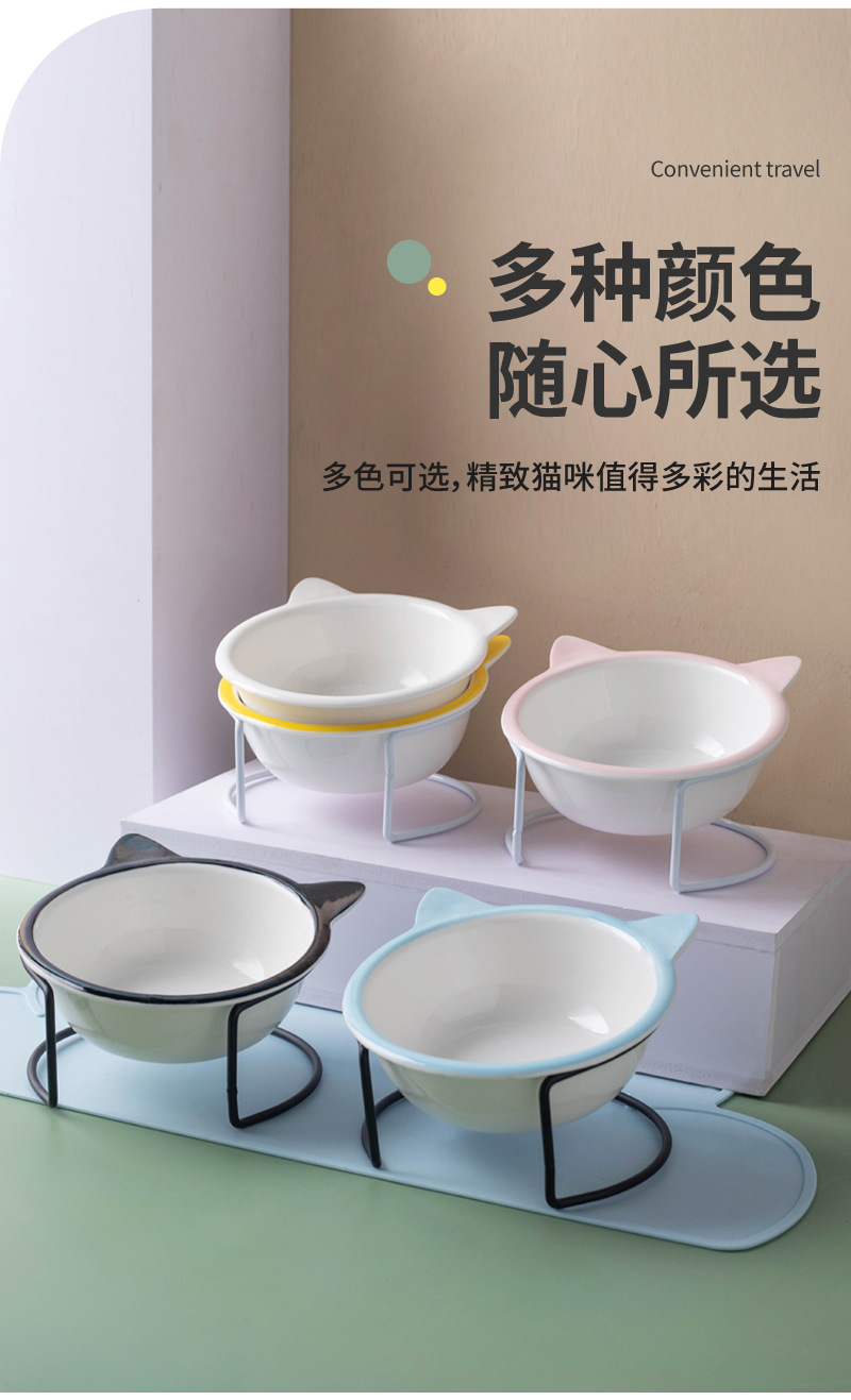 고양이 그릇 세라믹 그릇 전복 방지 고양이 분지 경추 보호 고양이 음식 그릇 애완 동물 마시는 그릇 높은 발 개 분지 일회용 개 그릇스토어 가기