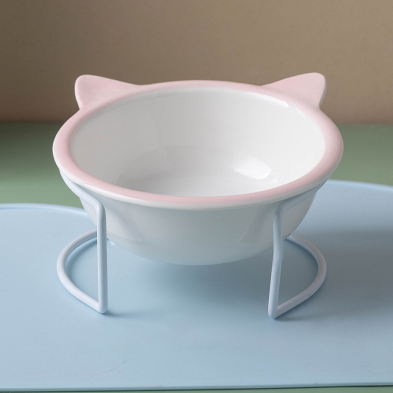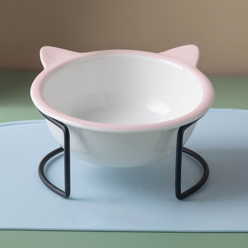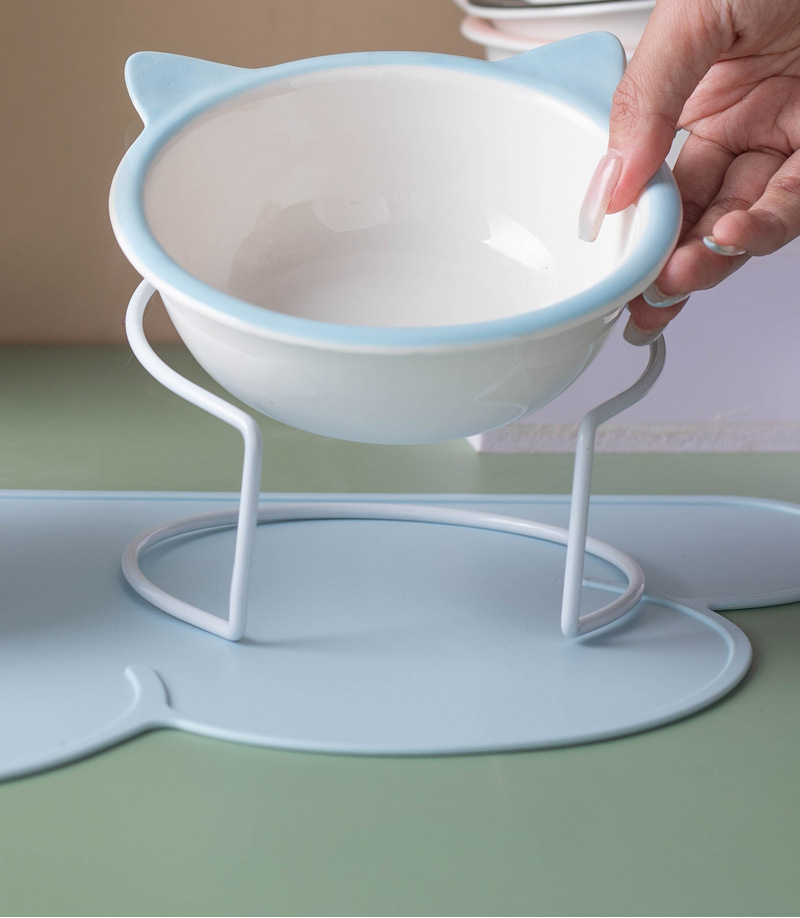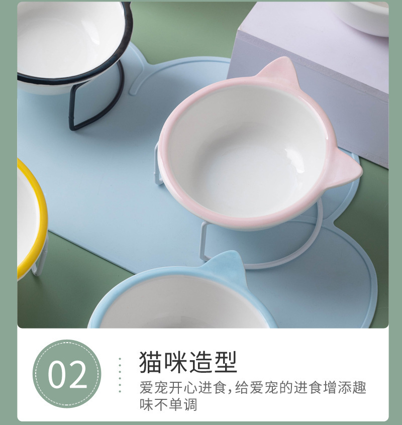 고양이 그릇 세라믹 그릇 전복 방지 고양이 분지 경추 보호 고양이 음식 그릇 애완 동물 마시는 그릇 높은 발 개 분지 일회용 개 그릇
