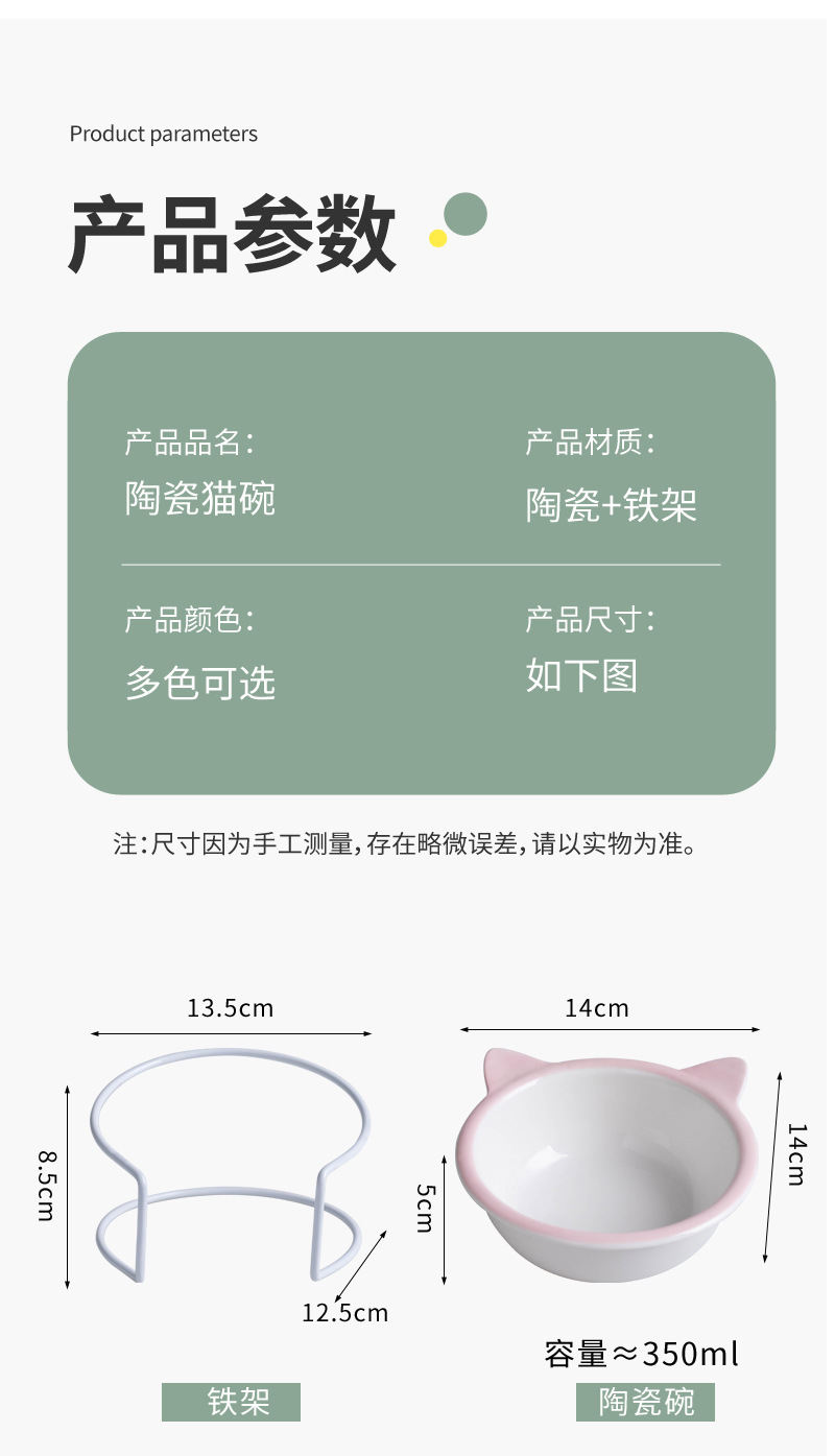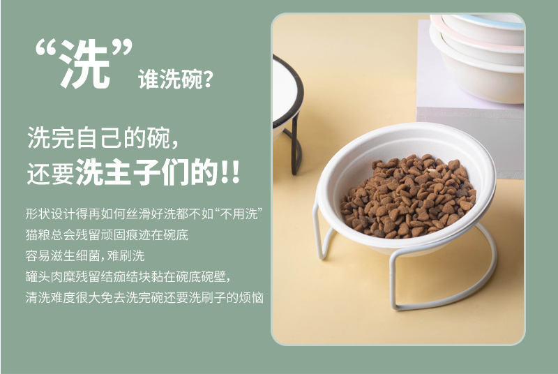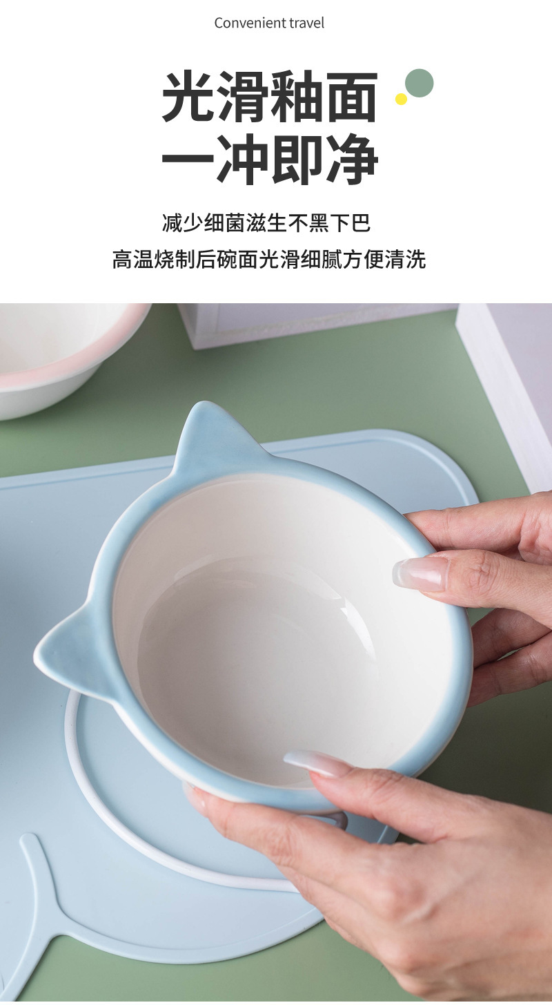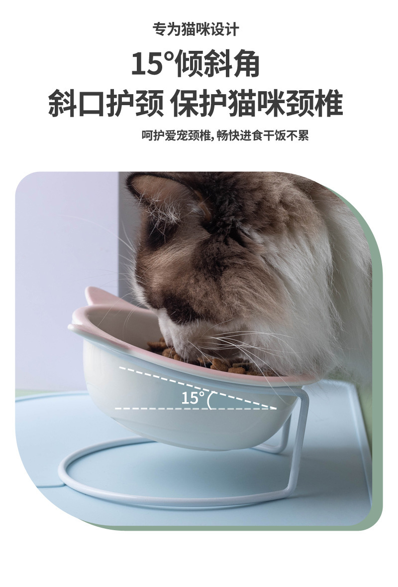 고양이 그릇 세라믹 그릇 전복 방지 고양이 분지 경추 보호 고양이 음식 그릇 애완 동물 마시는 그릇 높은 발 개 분지 일회용 개 그릇