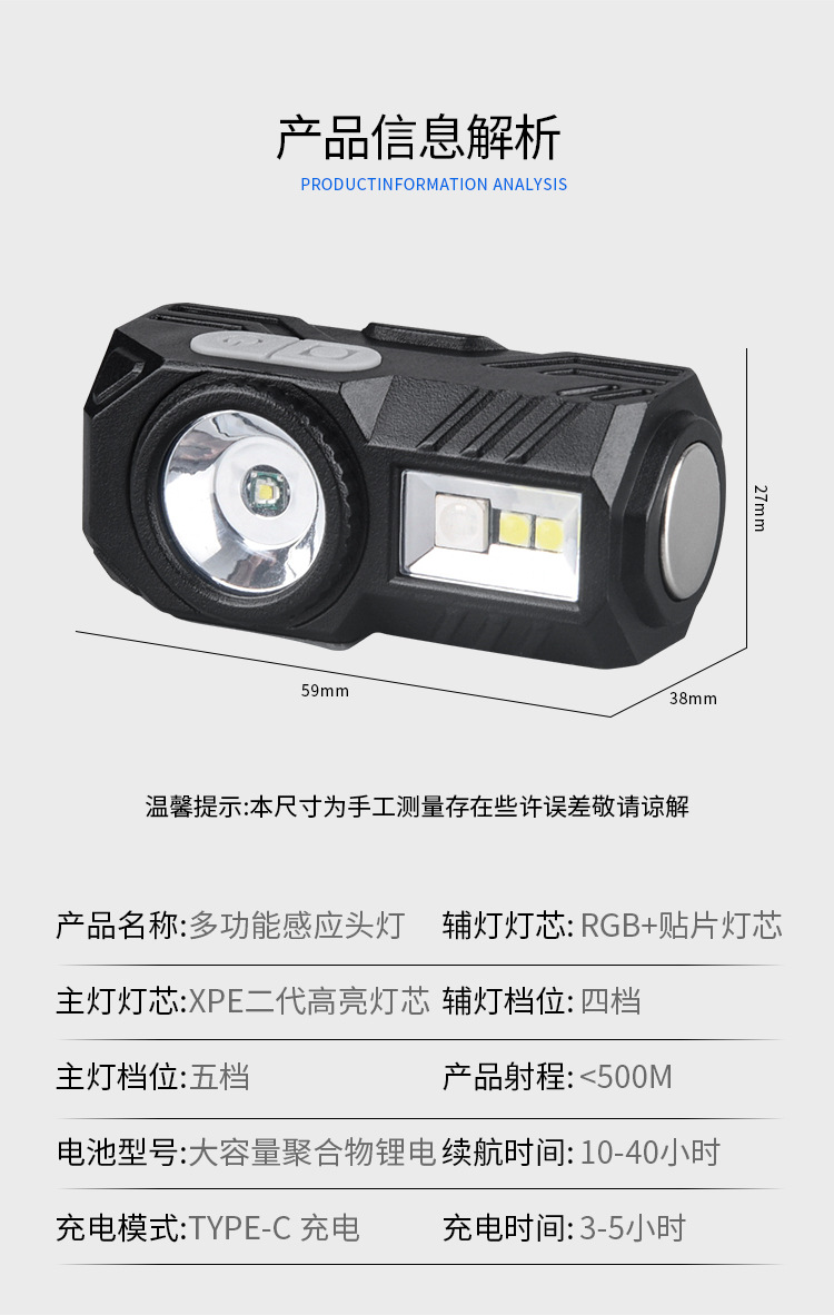 크로스보더 다기능 헤드라이트 야외 휴대용 캠핑 조명 180 도 회전 정비등 유도 헤드라이트스토어 가기