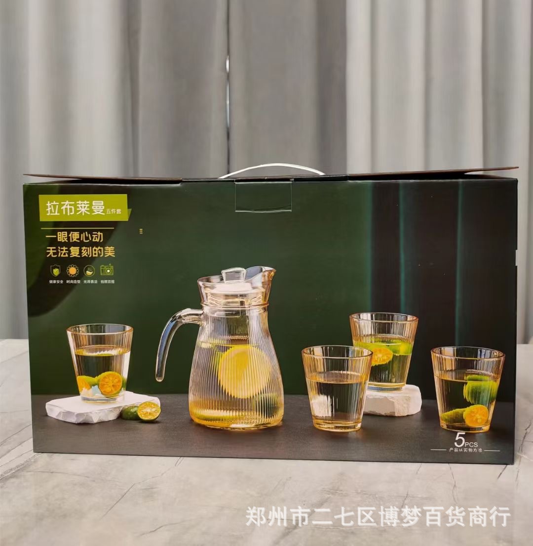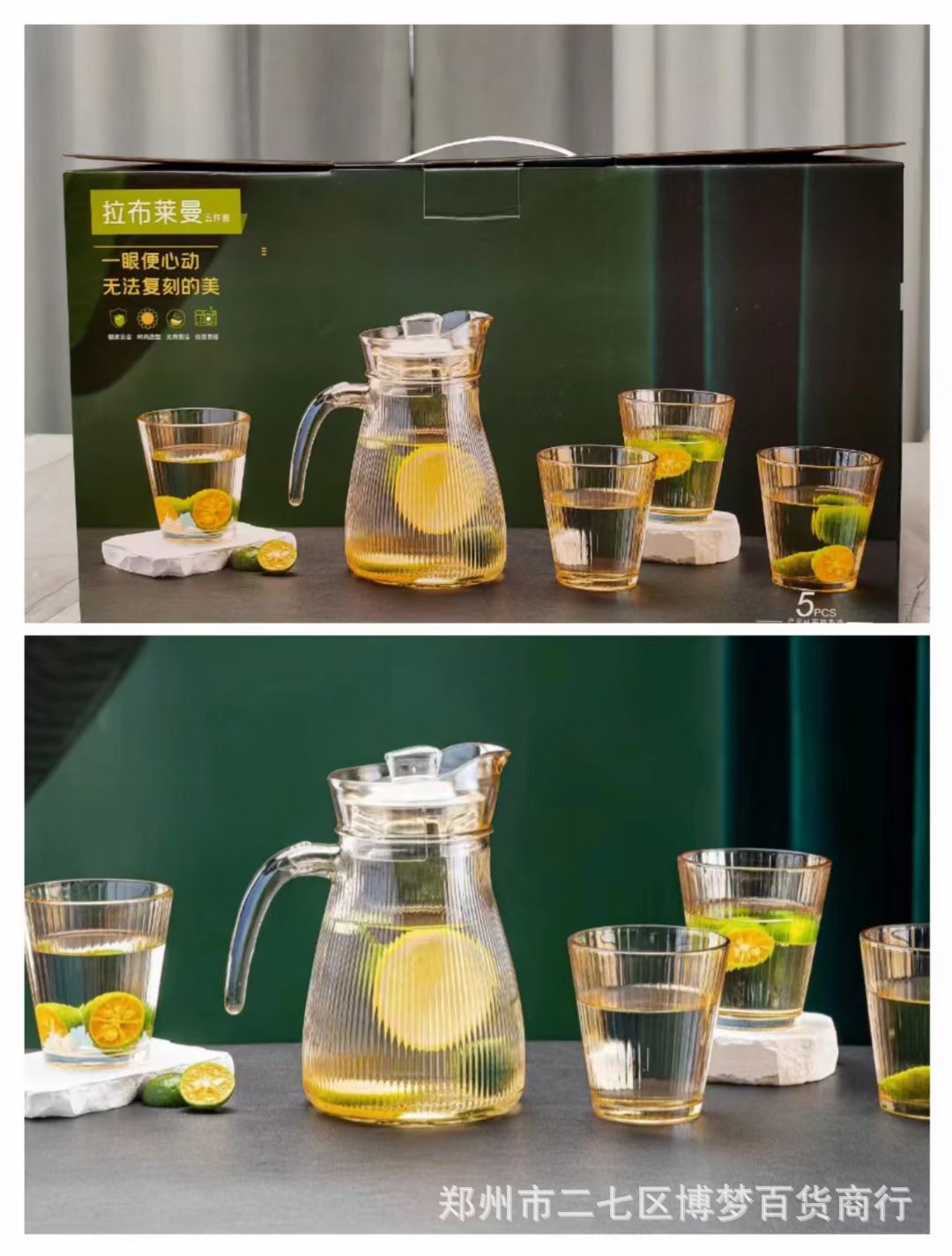 앰버 샐러드 브라이트맨 유리 냉수 병 내열 유리 냉수 병 가정 거실 대접 물병 세트스토어 가기