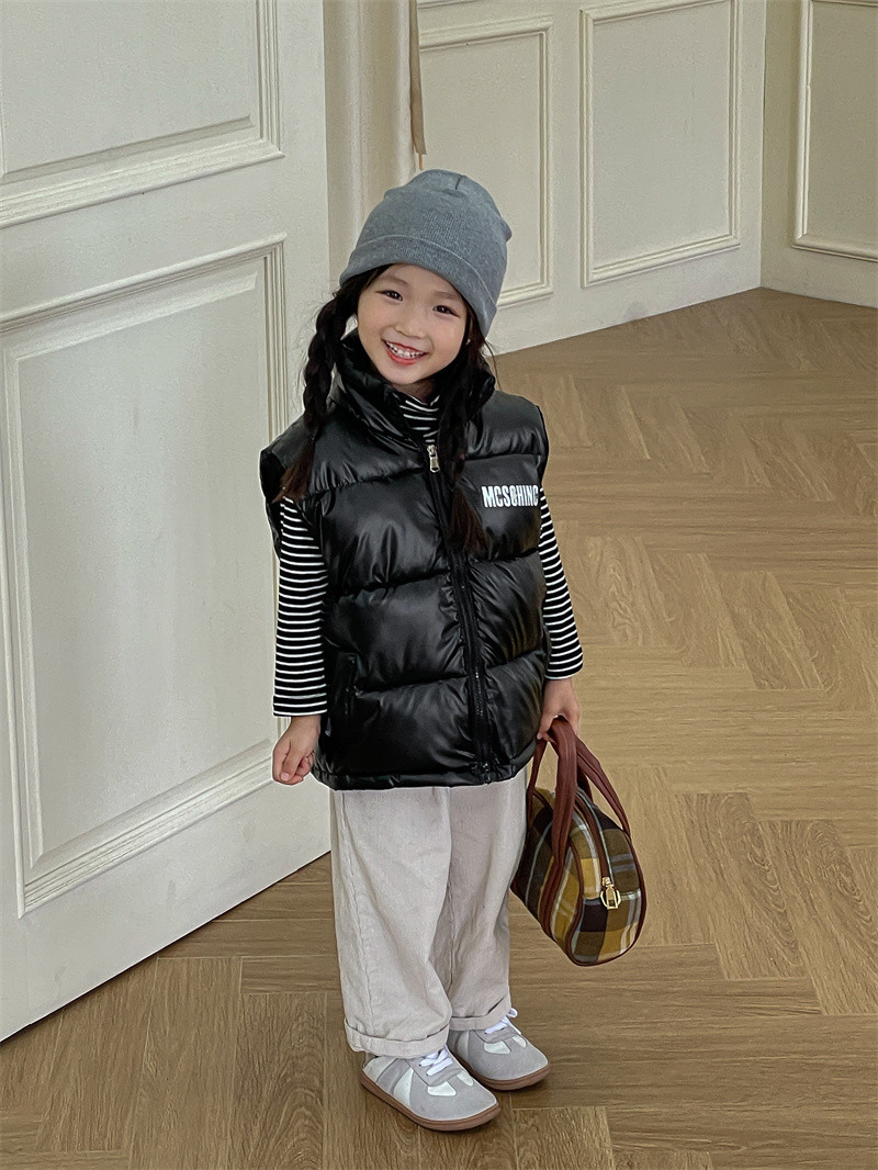 가을과 겨울 새로운 어린이 스탠드 칼라 코튼 조끼 밝은 얼굴 세탁 무료 소년 소녀 두꺼운 조끼 보물 착용 조끼 안티 시즌