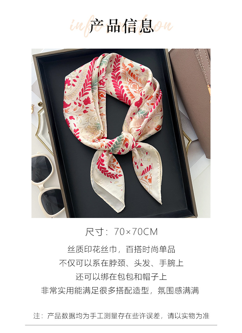 실크 스카프 여성의 우아한 모든 매치 캐슈 꽃 봄과 여름 프랑스 스타일 작은 사각형 스카프 가을 얇은 스카프 넥타이 헤어 타이 가방 헤어 밴드