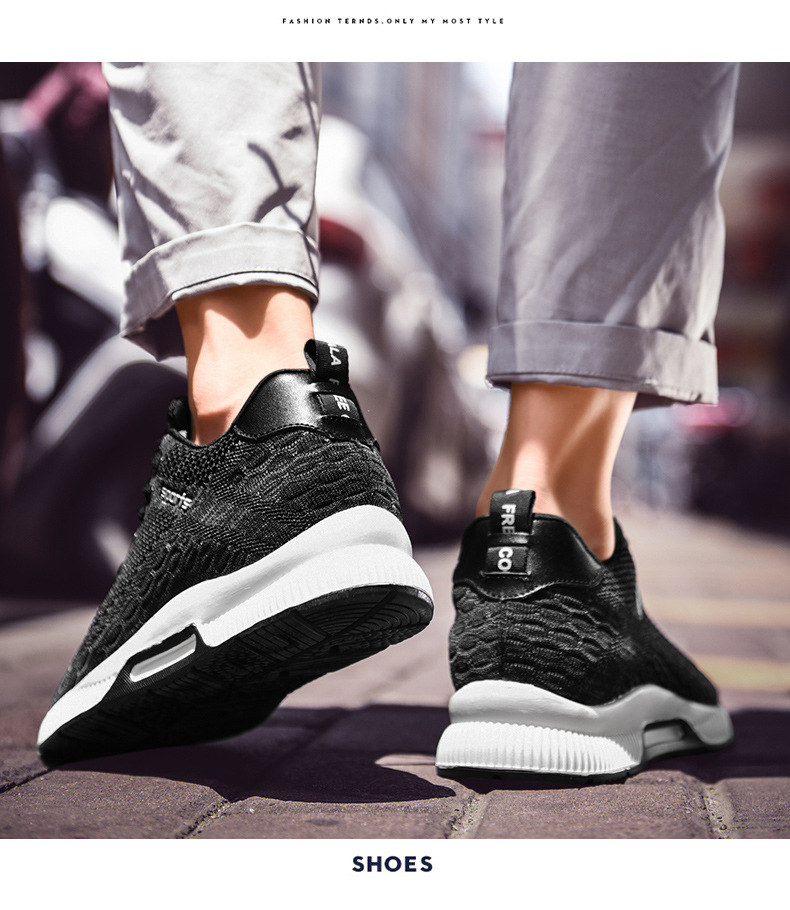 2023 크로스 보더 플라잉 위빙 운동화 메쉬 신발 내마모성 러닝 스포츠 캐주얼 신발 보이지 않는 높이 증가 남성 신발스토어 가기