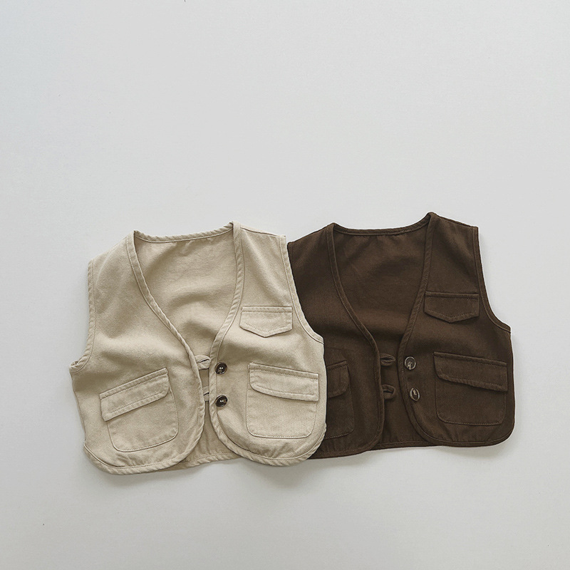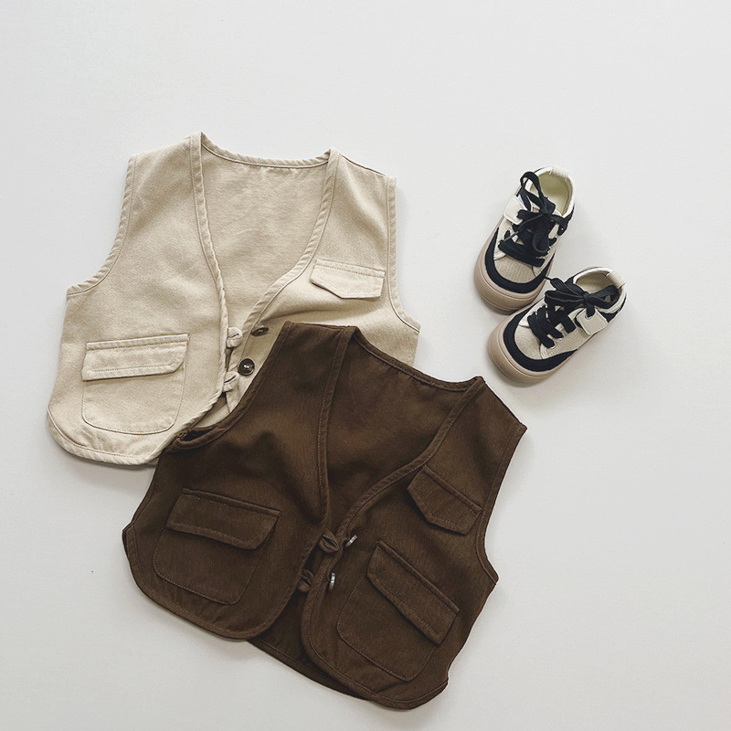 소년과 소녀 한국식 일본식 조끼 아동 조끼 2025 봄과 가을 새로운 스타일 중소형 아동 면화 다용도 조끼 유행 의류