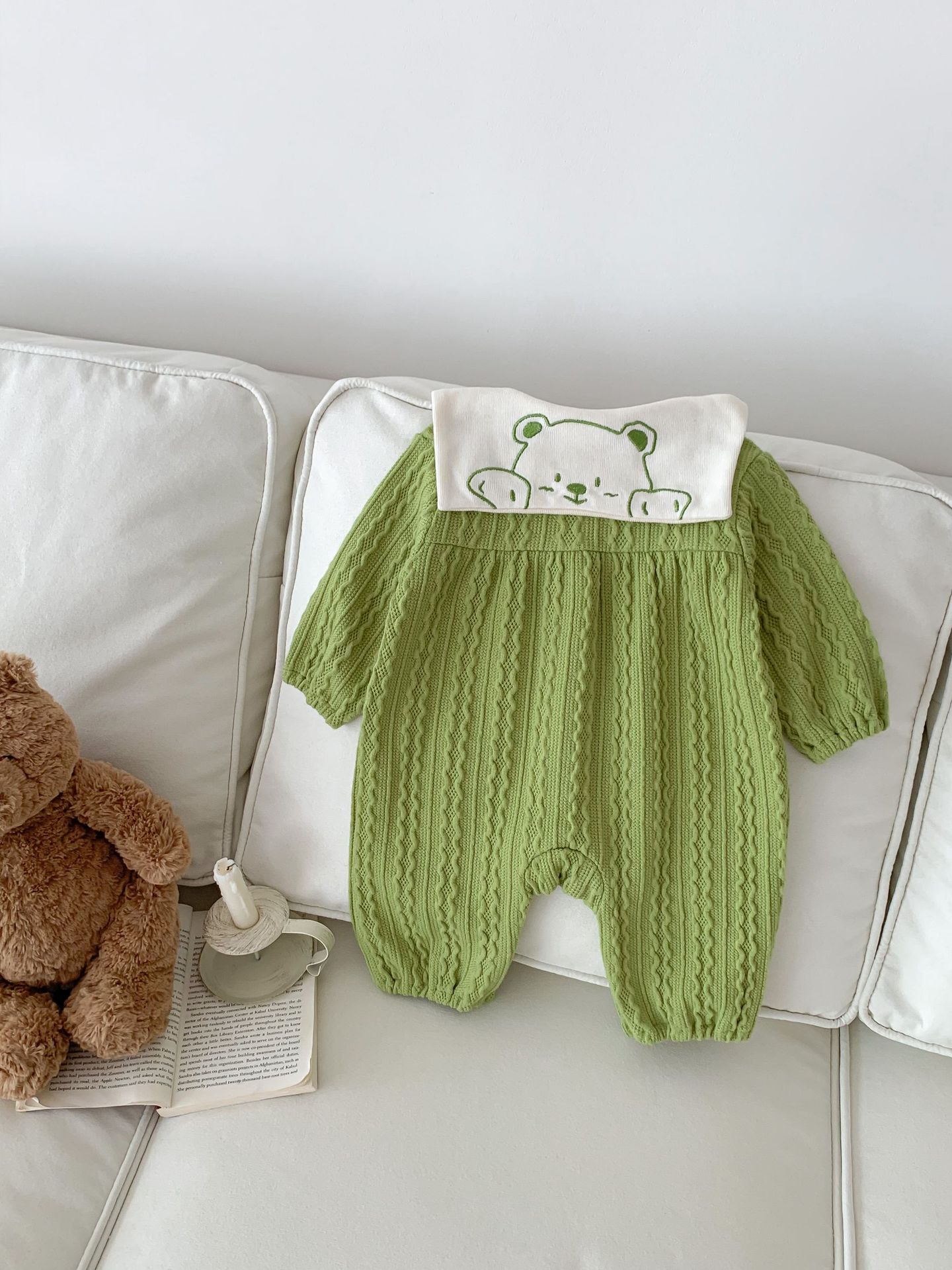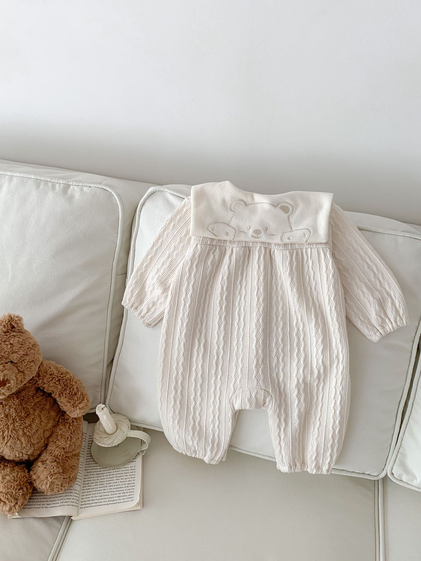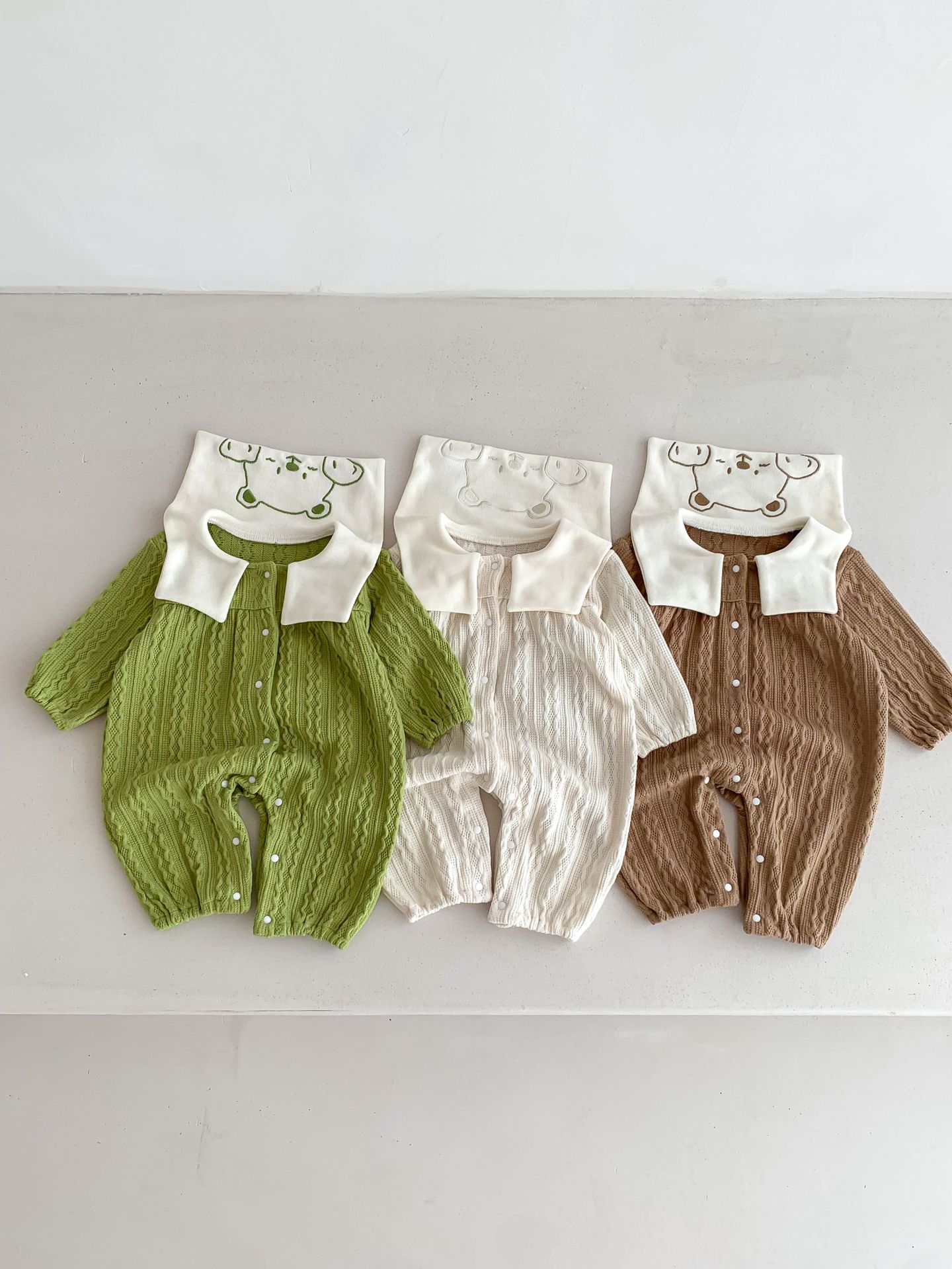 아기 소년과 소녀의 한국어 버전 아기 귀여운 곰 머리 트위스트 점프 슈트 ha-옷 긴 등산 봄과 가을 옷 등산 옷스토어 가기