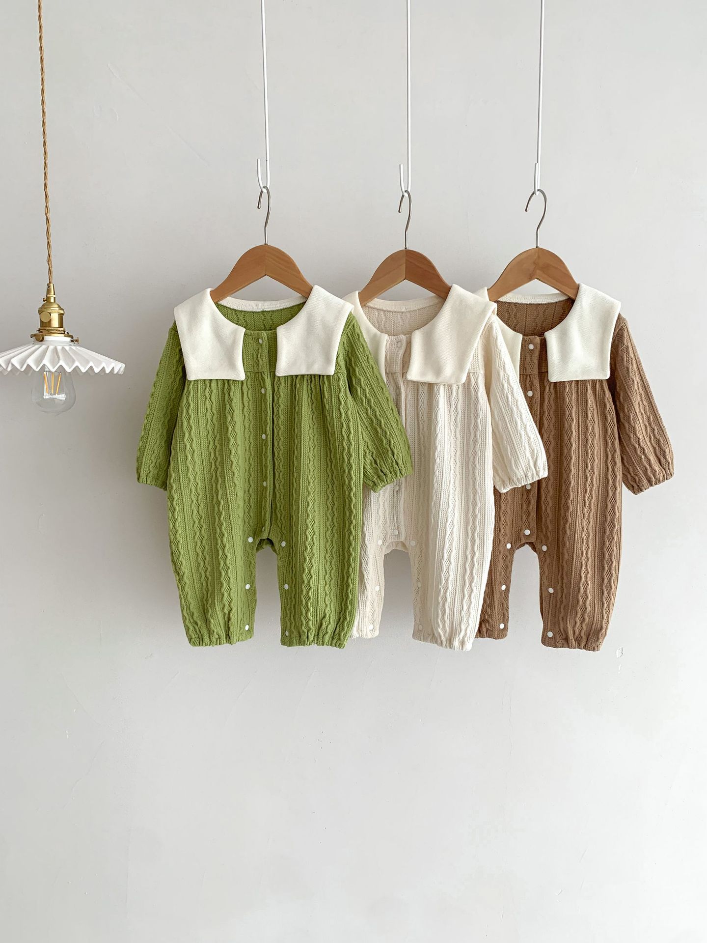 아기 소년과 소녀의 한국어 버전 아기 귀여운 곰 머리 트위스트 점프 슈트 ha-옷 긴 등산 봄과 가을 옷 등산 옷