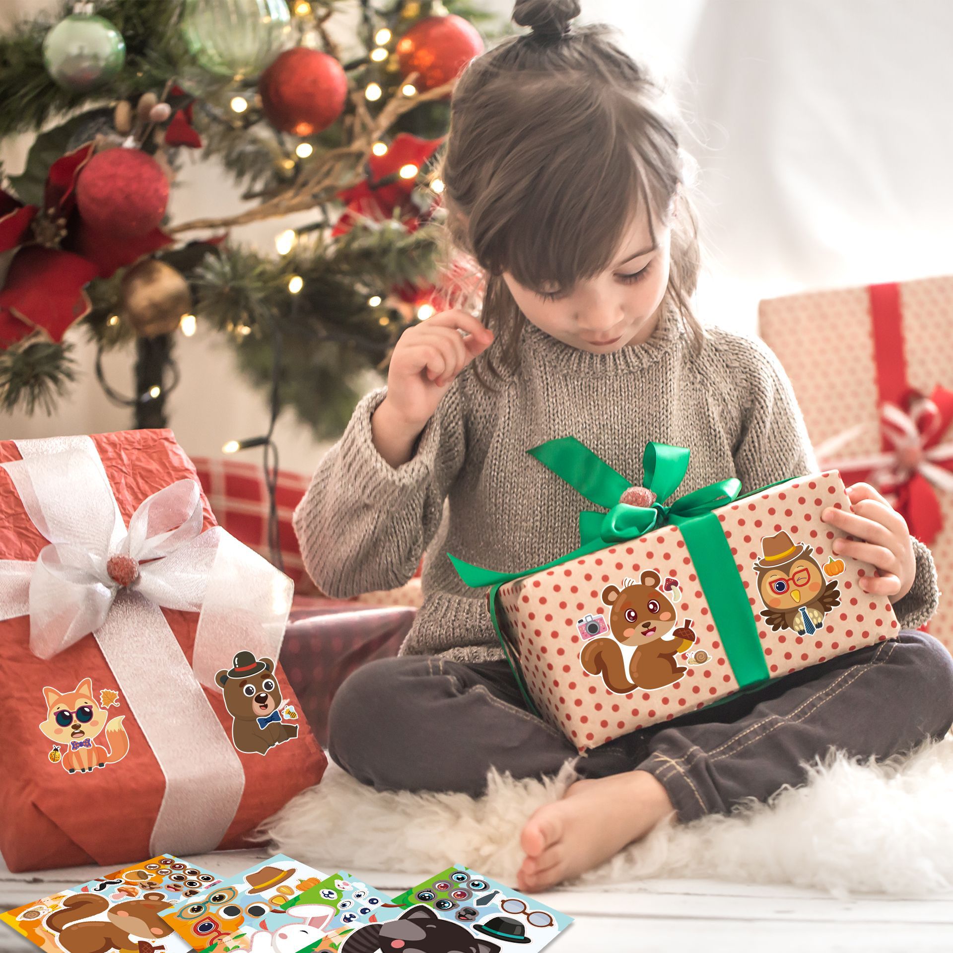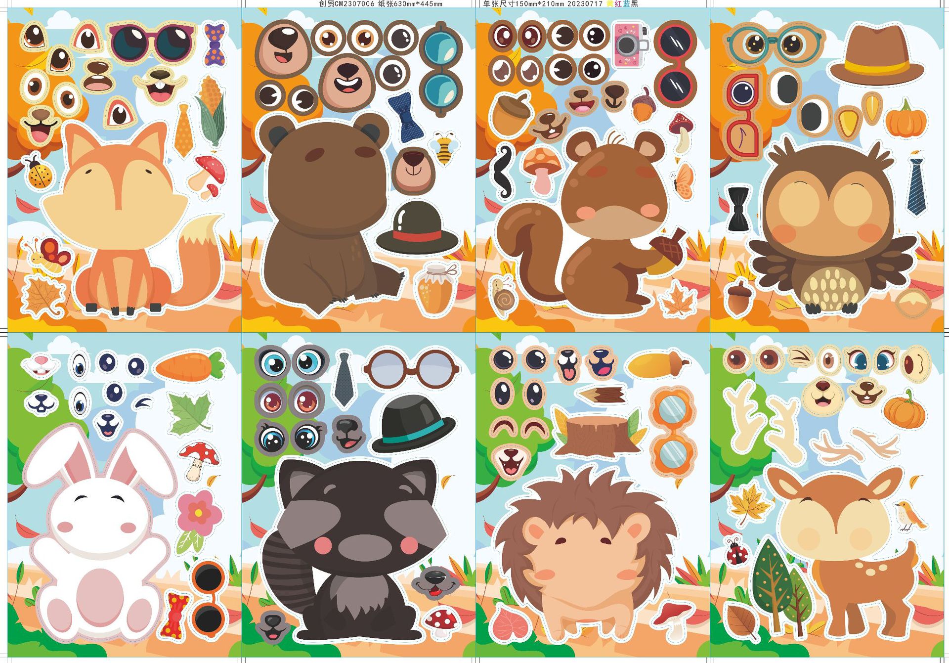 CM2307006 어린이 만화 귀여운 만화 동물 숲 부모-자식 대화 형 퍼즐 DIY 얼굴 스티커
