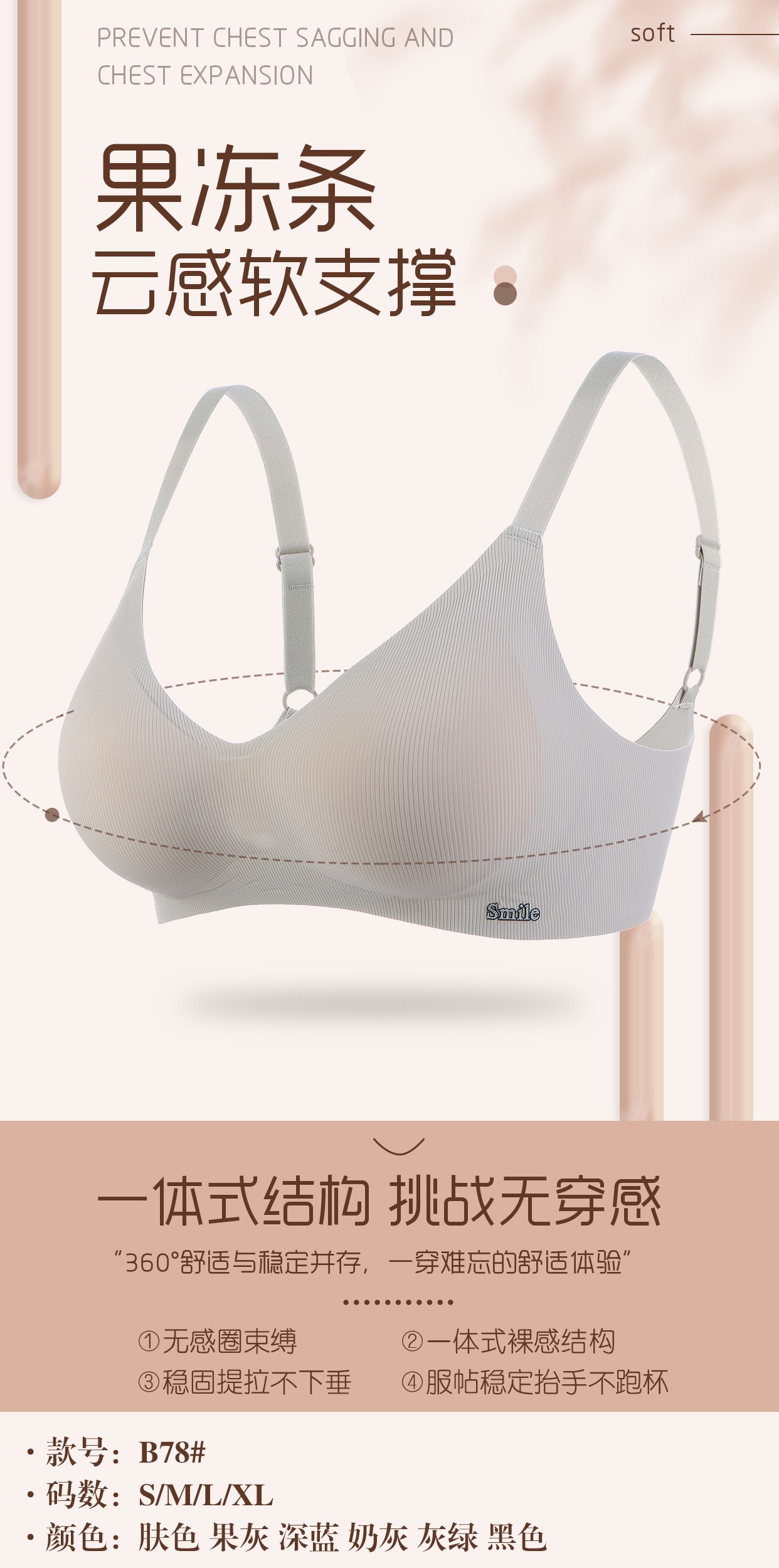 지애이센세이션 무봉제 브라 B78 젤리 스트립 노와이어 업라이트 스포츠 수면 브라 사이드 브라스토어 가기