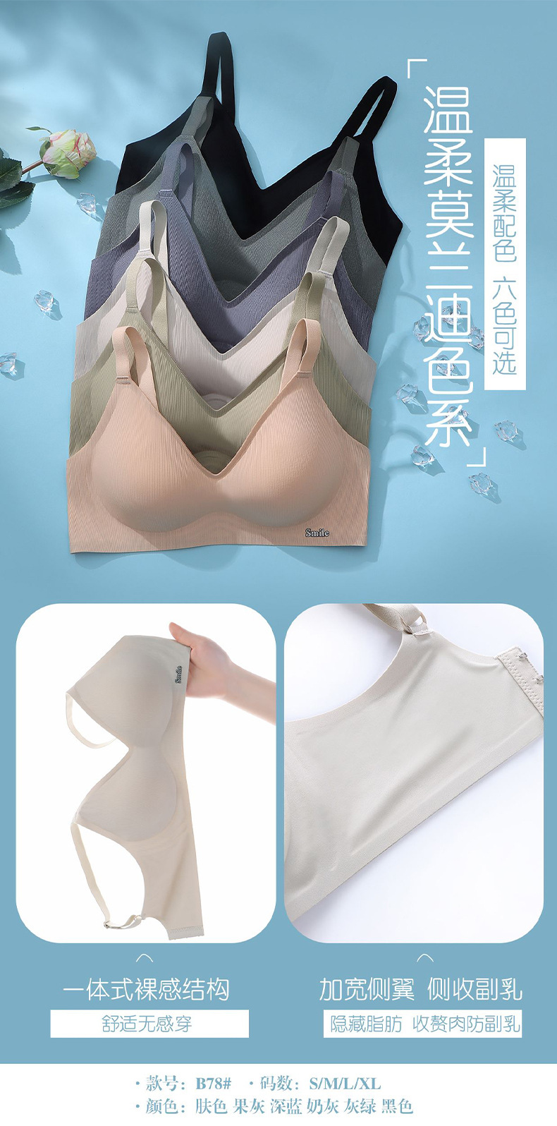 지애이센세이션 무봉제 브라 B78 젤리 스트립 노와이어 업라이트 스포츠 수면 브라 사이드 브라