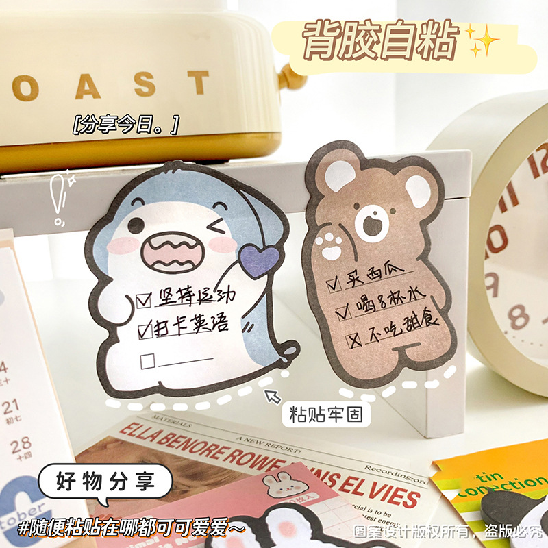 귀여운 동물 공원 포스트잇 노트 30 찢을 수있는 자체 접착 만화 노트 도매 작은 빨간 책스토어 가기