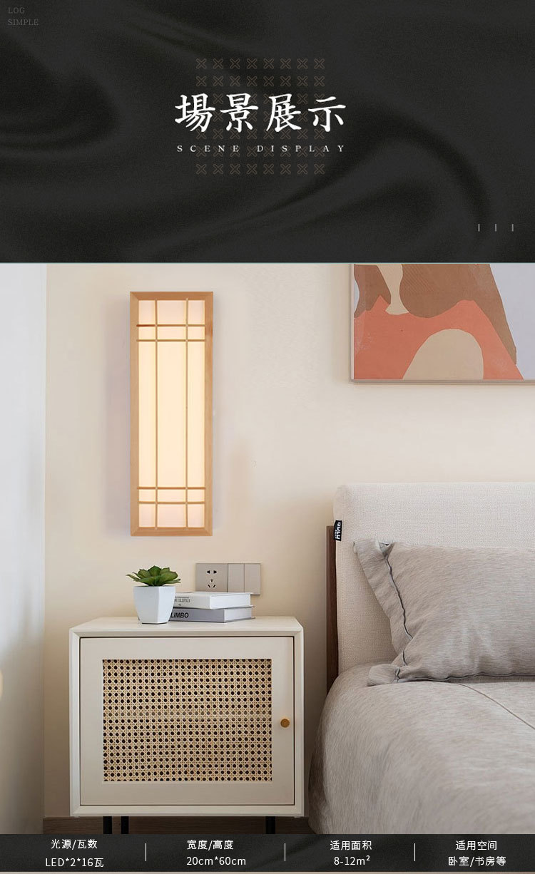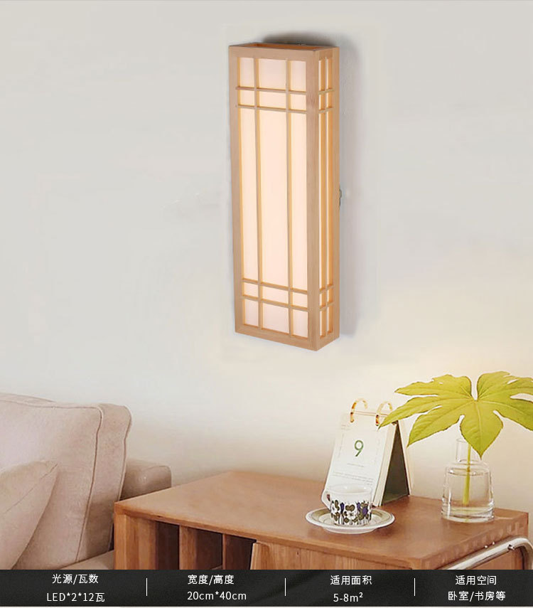 일본식 벽 램프 단단한 나무 침실 침대 옆 램프 다다미 호텔 벽 램프 통로 직사각형 간단한 램프 도매스토어 가기