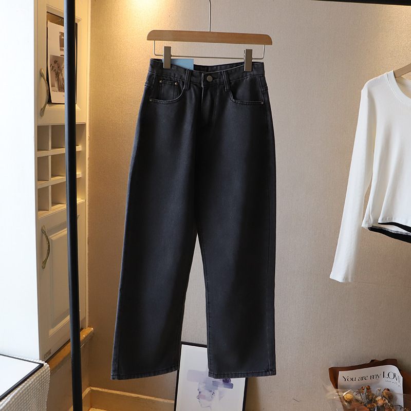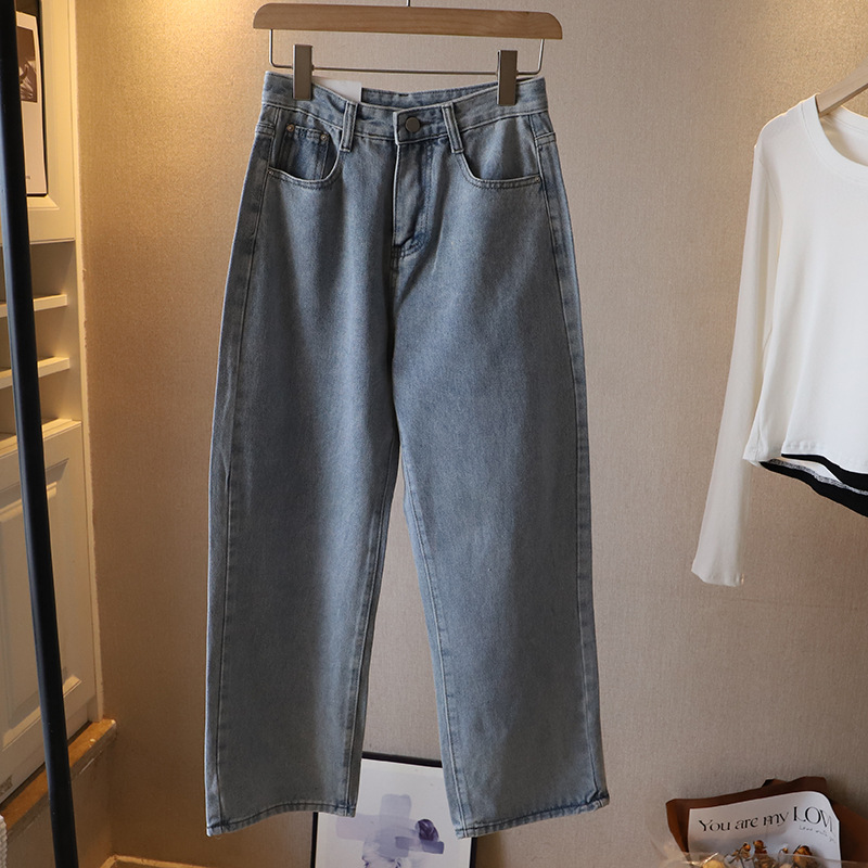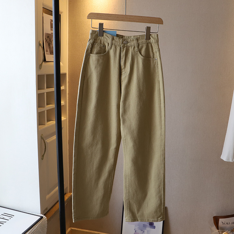 [비청] 2023 초가을 새로운 한국 여성 패션 원 버튼 단색 스트레이트 팬츠 데님 바지 8702스토어 가기