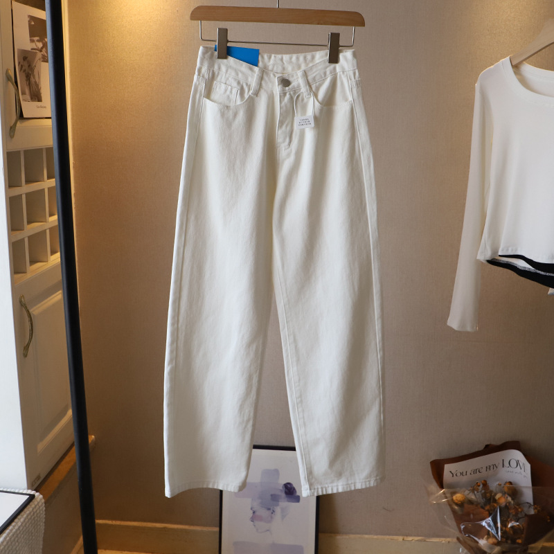 [비청] 2023 초가을 새로운 한국 여성 패션 원 버튼 단색 스트레이트 팬츠 데님 바지 8702