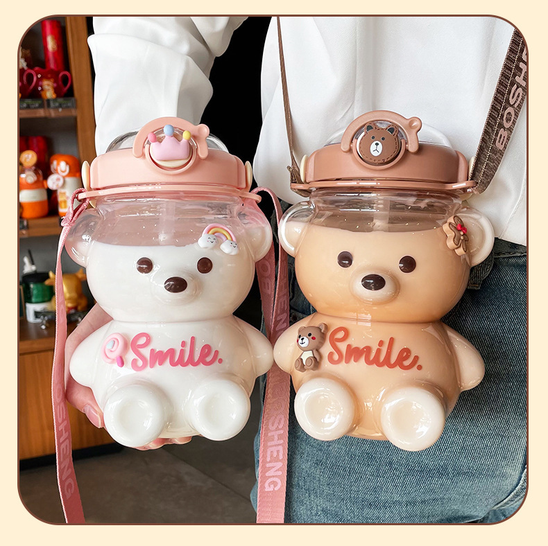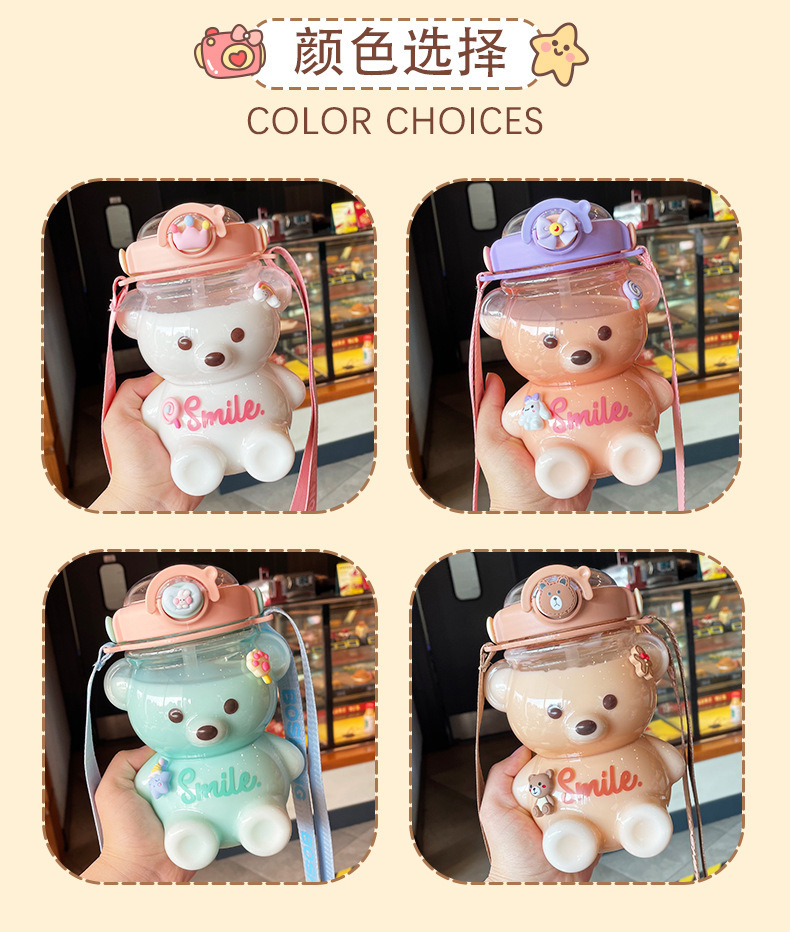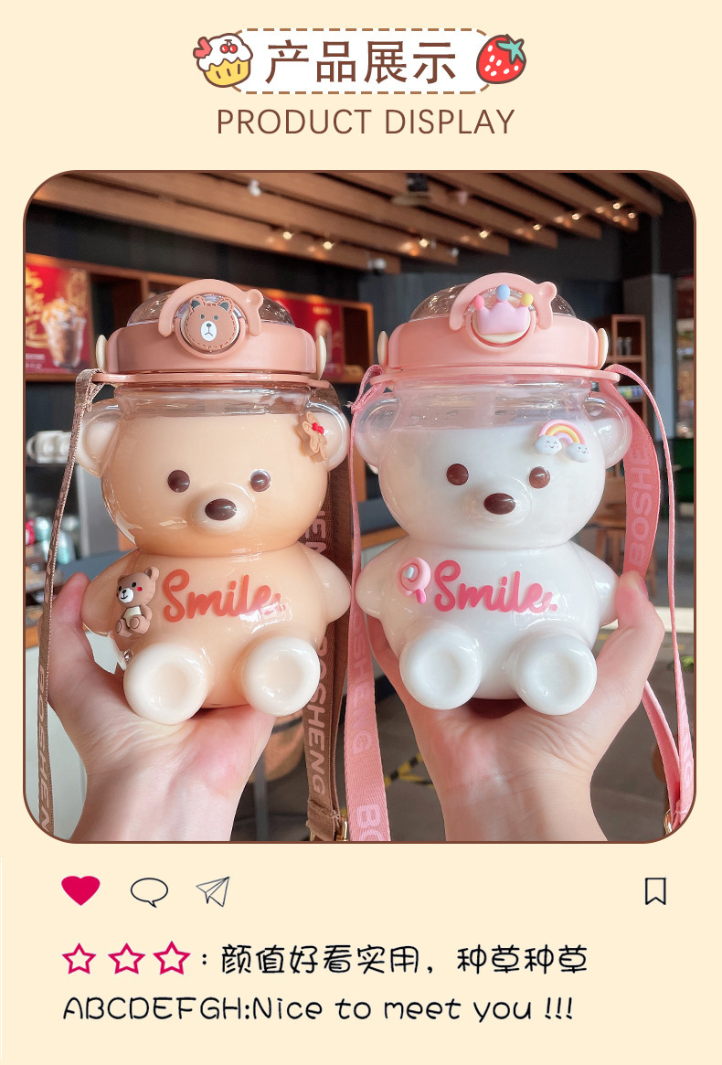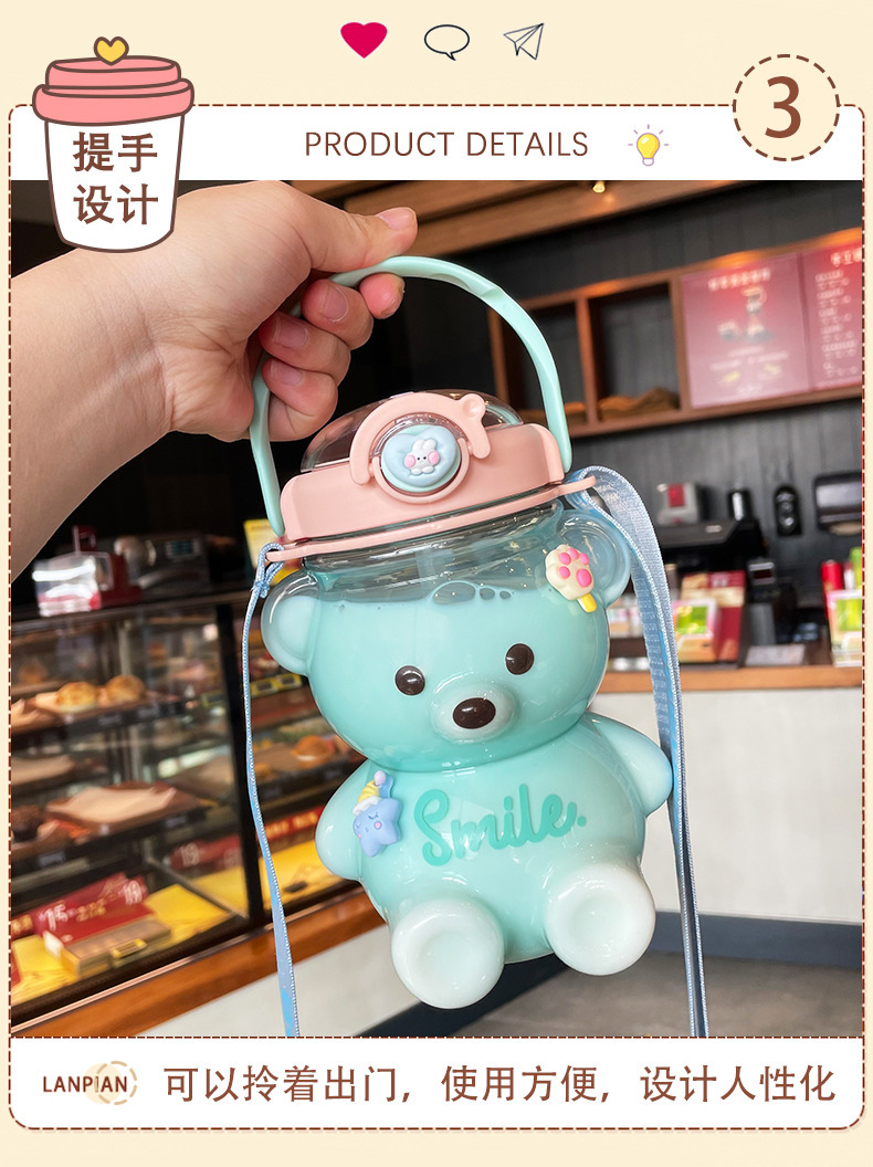 소녀를위한 곰 물 컵 여름 대용량 밀짚 플라스틱 컵 높은 찾고 주전자 휴대용 귀여운 어린이 물병스토어 가기