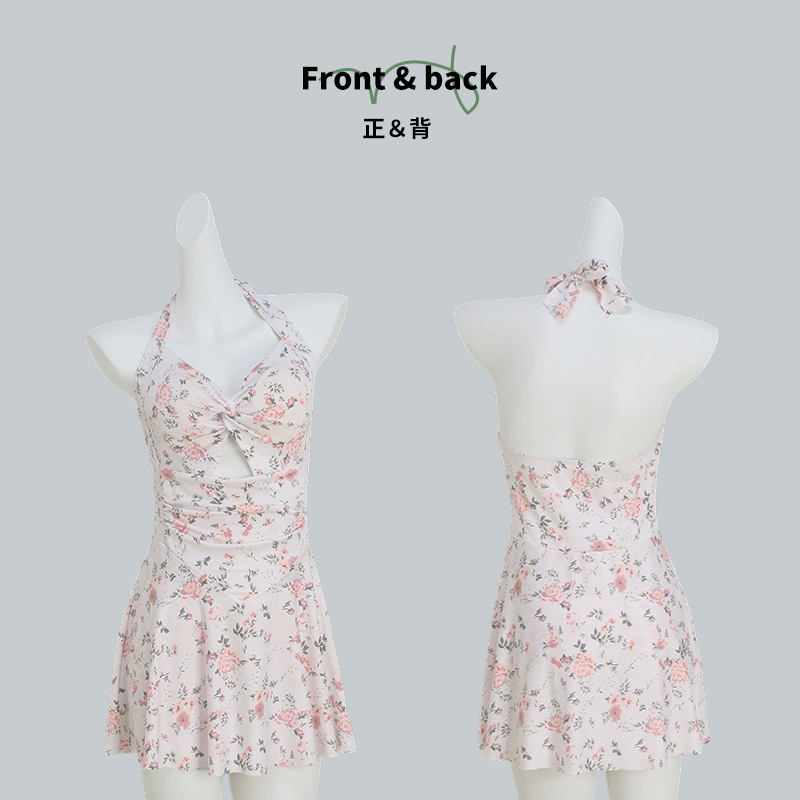 새로운 패션 여성 수영복 한국 스타일 꽃무늬 원피스 드레스 스타일 순수한 매력 홀터넥 온천 고급 수영복 도매스토어 가기