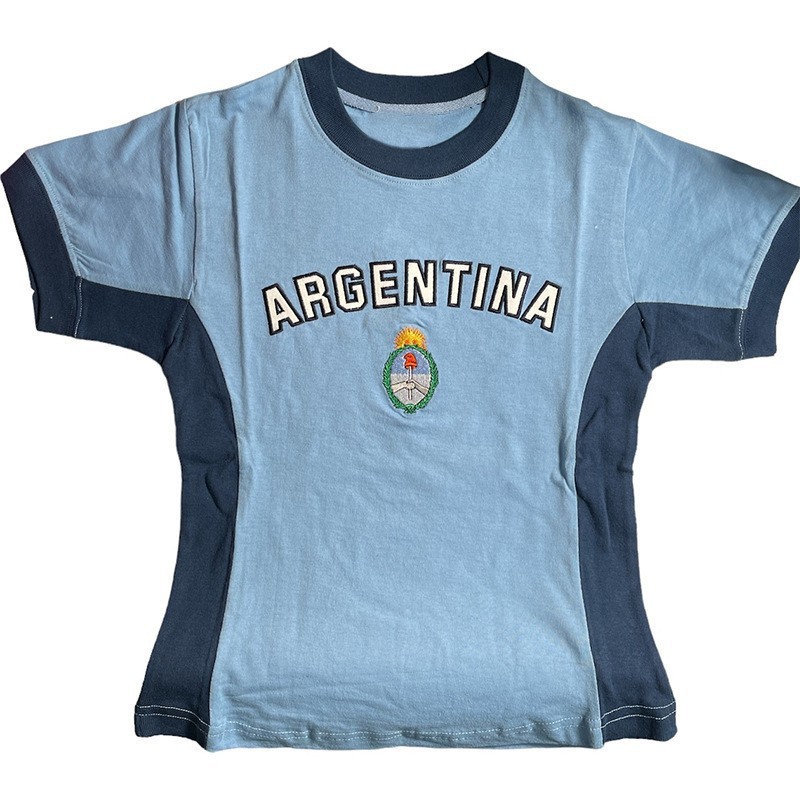 유럽과 미국의 복고풍 미적 탑 녹색 여름 티셔츠 자수 문자 패턴 반팔 베이비 배꼽 탑 여성용스토어 가기