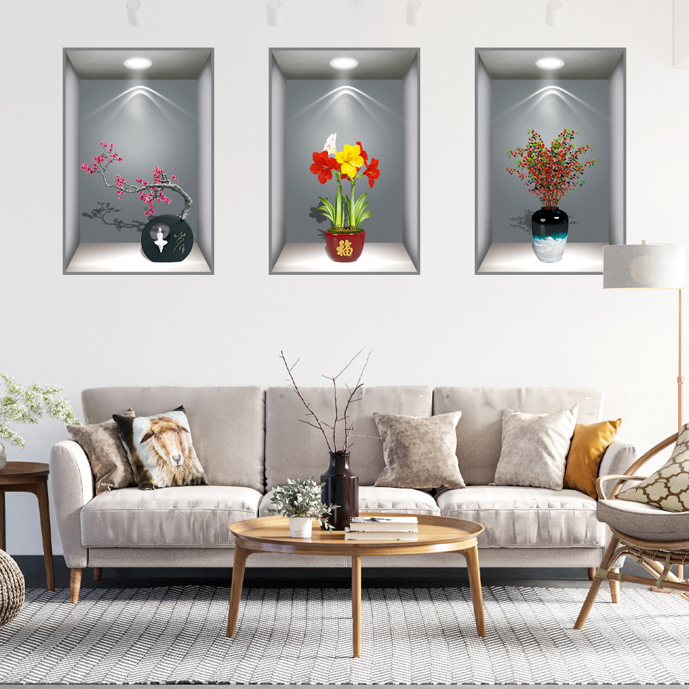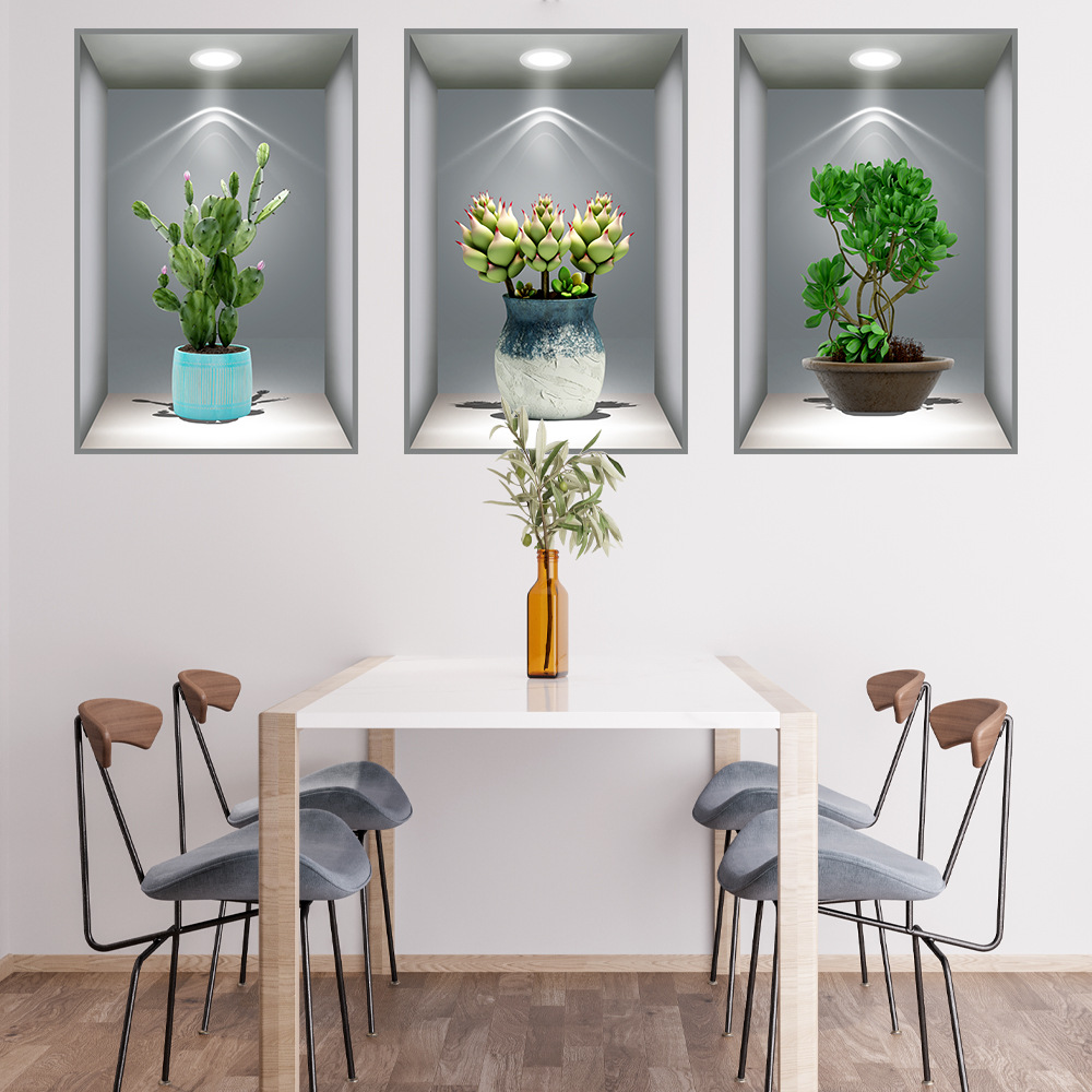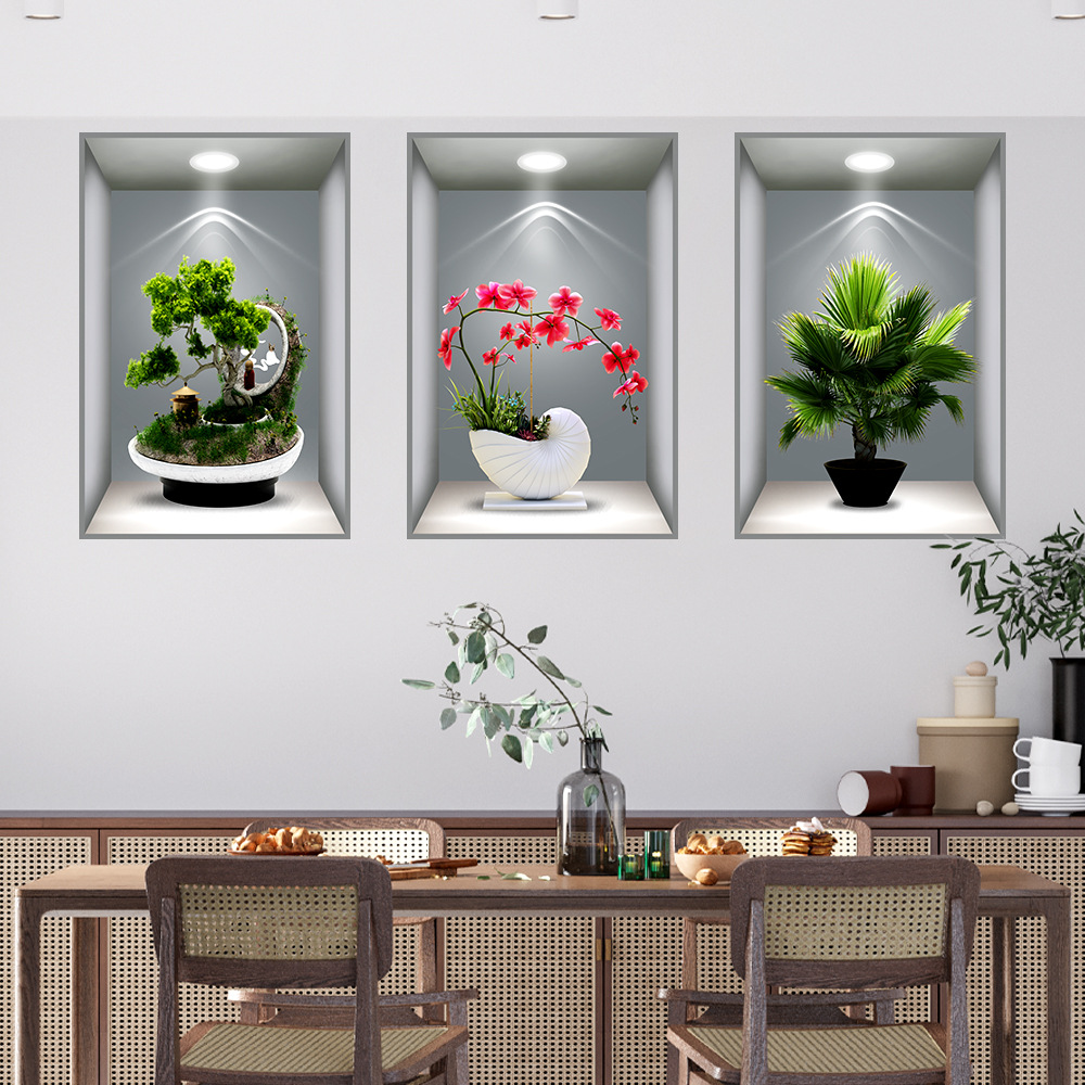 헤어 샵 가정부 식물 꽃을 대신하여 3D 화분 스티커 통로 계단 장식 그림 호텔 레스토랑 벽화 자체 접착 그림스토어 가기