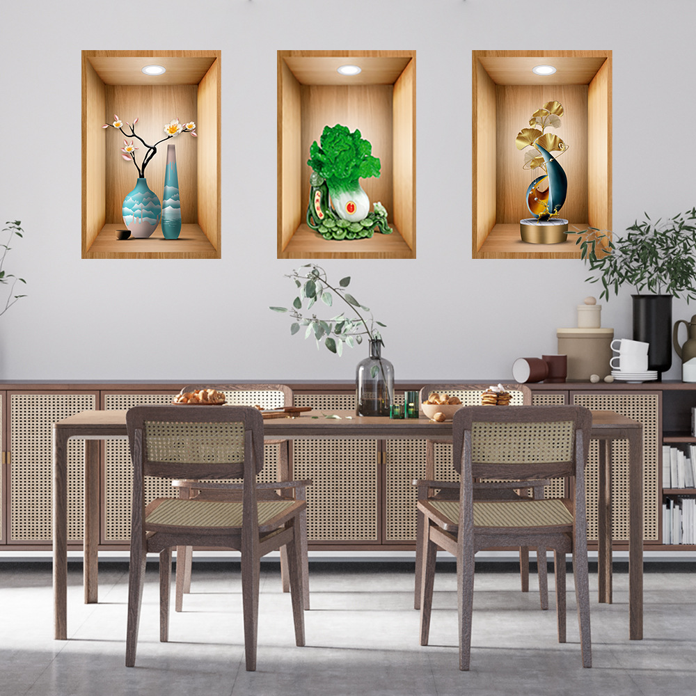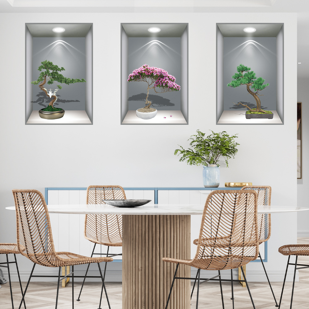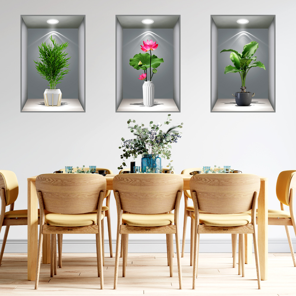 헤어 샵 가정부 식물 꽃을 대신하여 3D 화분 스티커 통로 계단 장식 그림 호텔 레스토랑 벽화 자체 접착 그림