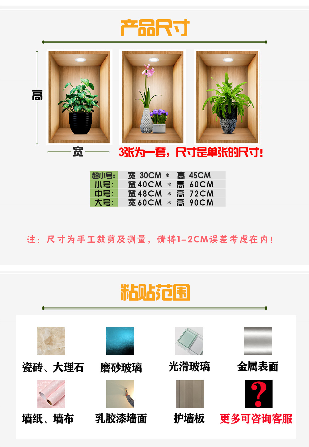 • (1 머리 3) 큰: 폭 60cm * 높이 90cm (각 크기)