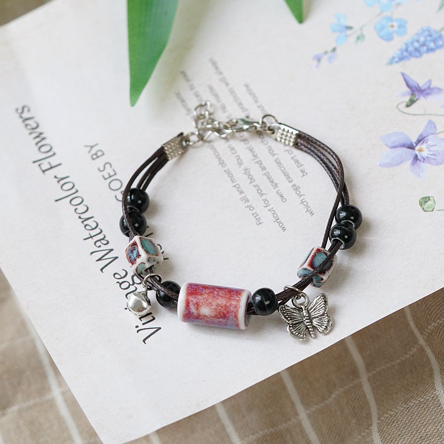 예술적 손으로 짠 나비 Jingdezhen 세라믹 팔찌 여성의 국가 스타일 새로운 중국 핸드 로프 보석 도매 1 미터 도자기스토어 가기