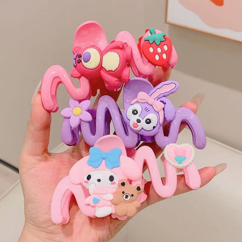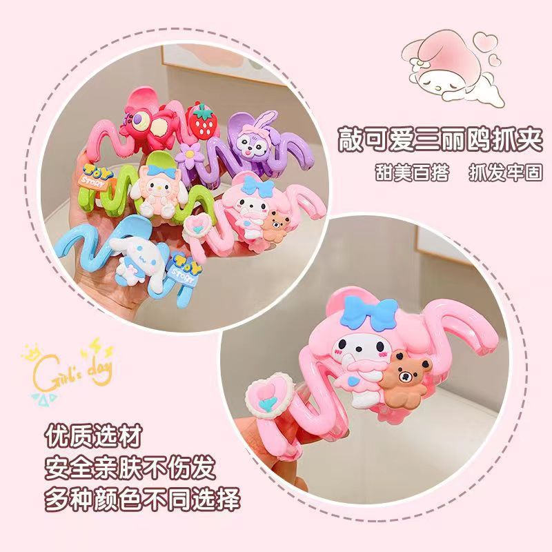 어린이 산리오 그랩 클립 귀여운 딸기 곰 말꼬리 헤어 클립 헤어 클립 어린 소녀 공주 헤어 액세서리를 해치지 않는 헤어 클립