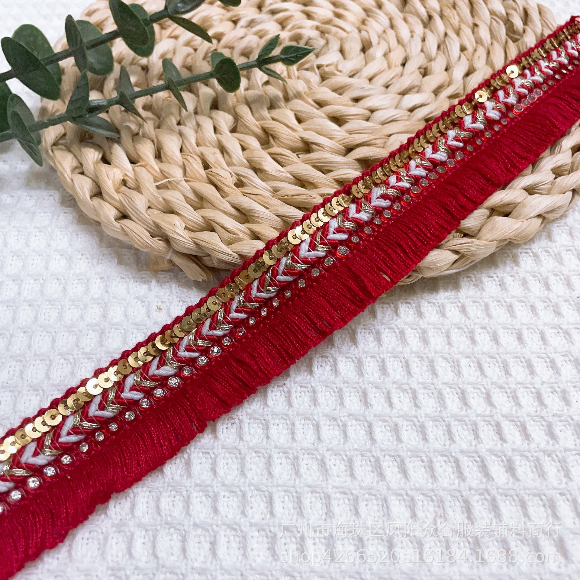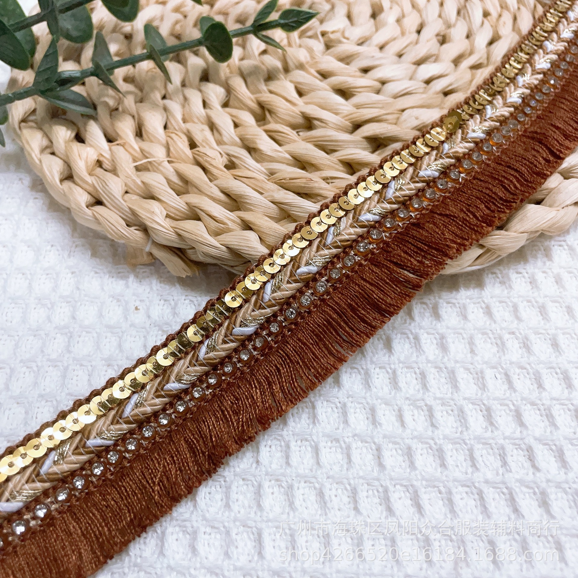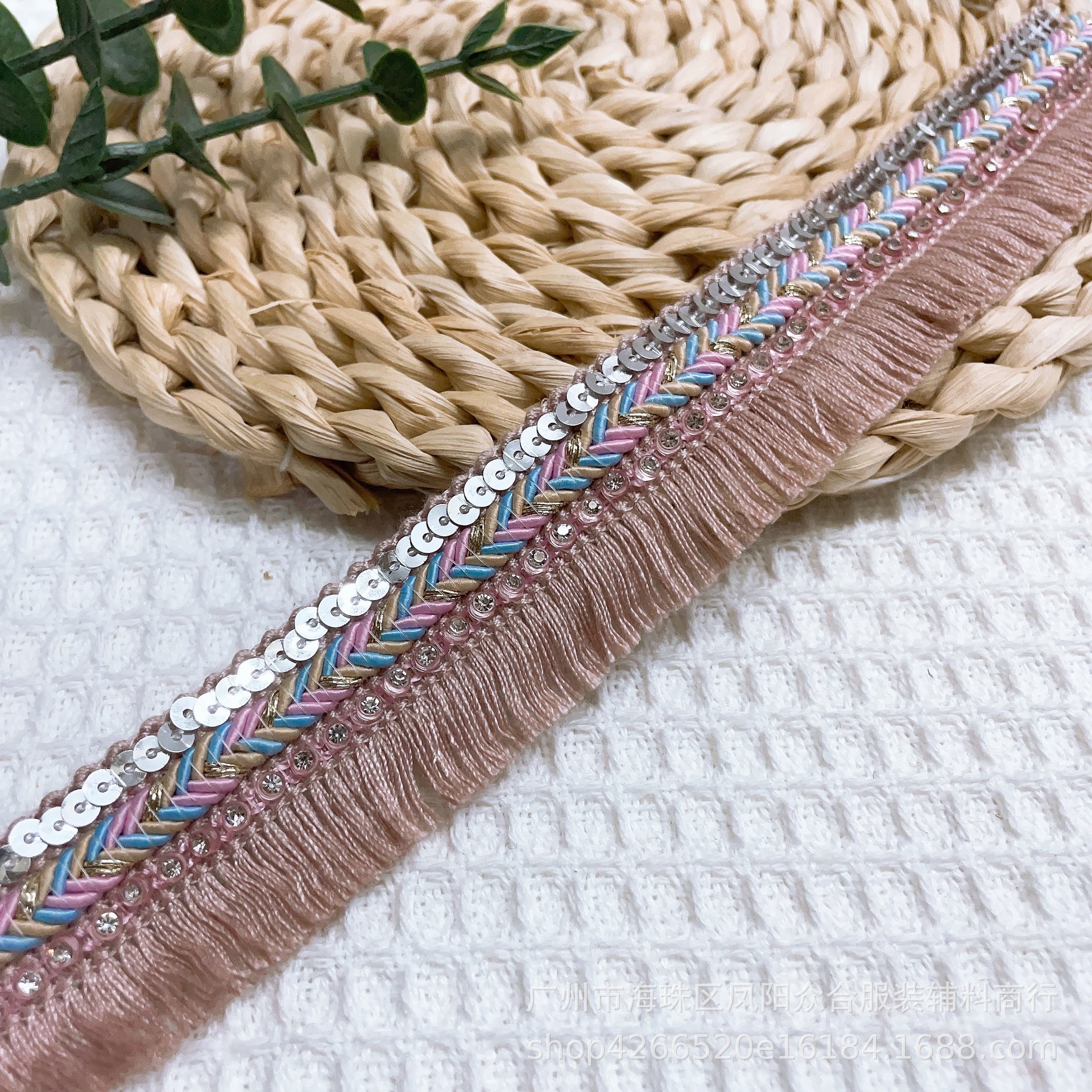 재고 3cm 꼰 행 수염 레이스 구슬 드릴 벨트 공예 내셔널 스타일 술 의류 수하물 신발 액세서리