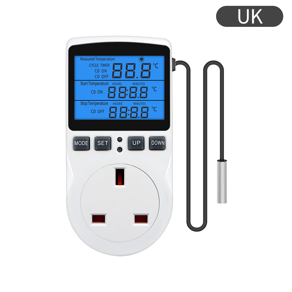 백라이트 유럽 게이지 지능형 디지털 서모 스탯 카운트 다운 온도 제어 스위치 소켓 타이밍 온도 컨트롤러 도매스토어 가기