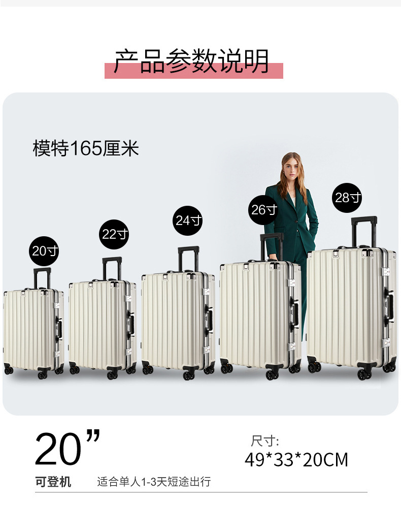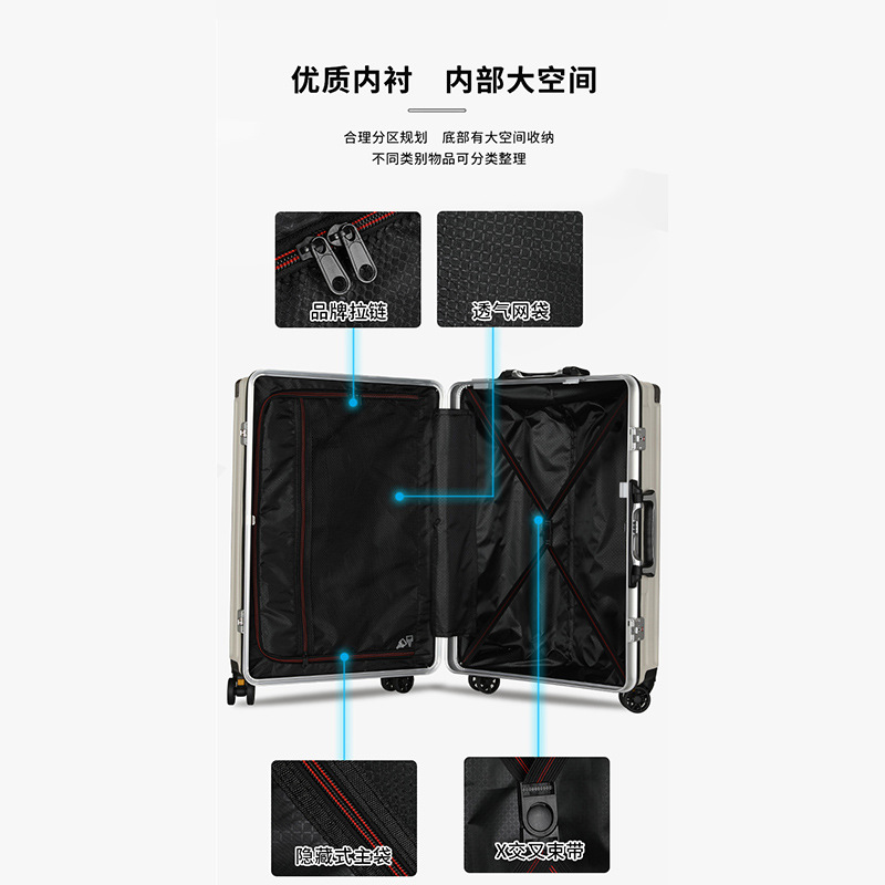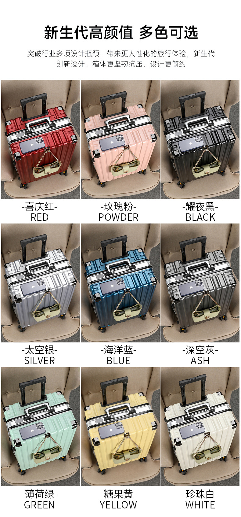 알루미늄 프레임 트롤리 케이스 여행 가방 암호 상자 사일런트 유니버설 휠 남여 공용 학생 수하물 대용량 여행 가방