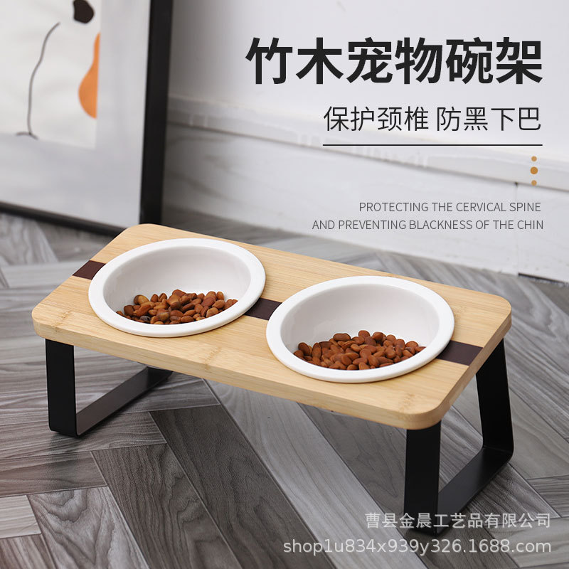 대나무 애완견 그릇, 조절 가능한 애완동물 고양이 그릇 랙, 세라믹 이중 그릇, 경추를 보호하고 고양이 먹이 그릇을 뒤집는 것을 방지합니다.스토어 가기