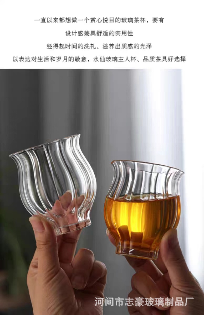 유리 수선화 마스터 컵, 투명 물컵, 싱글 컵, 작은 컵, 찻잔, 두꺼운 유리 컵, 꽃 컵