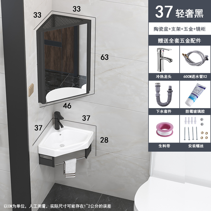 • 37cm 도자기 분지 + 삼각형 캐비닛 + 거울 캐비닛