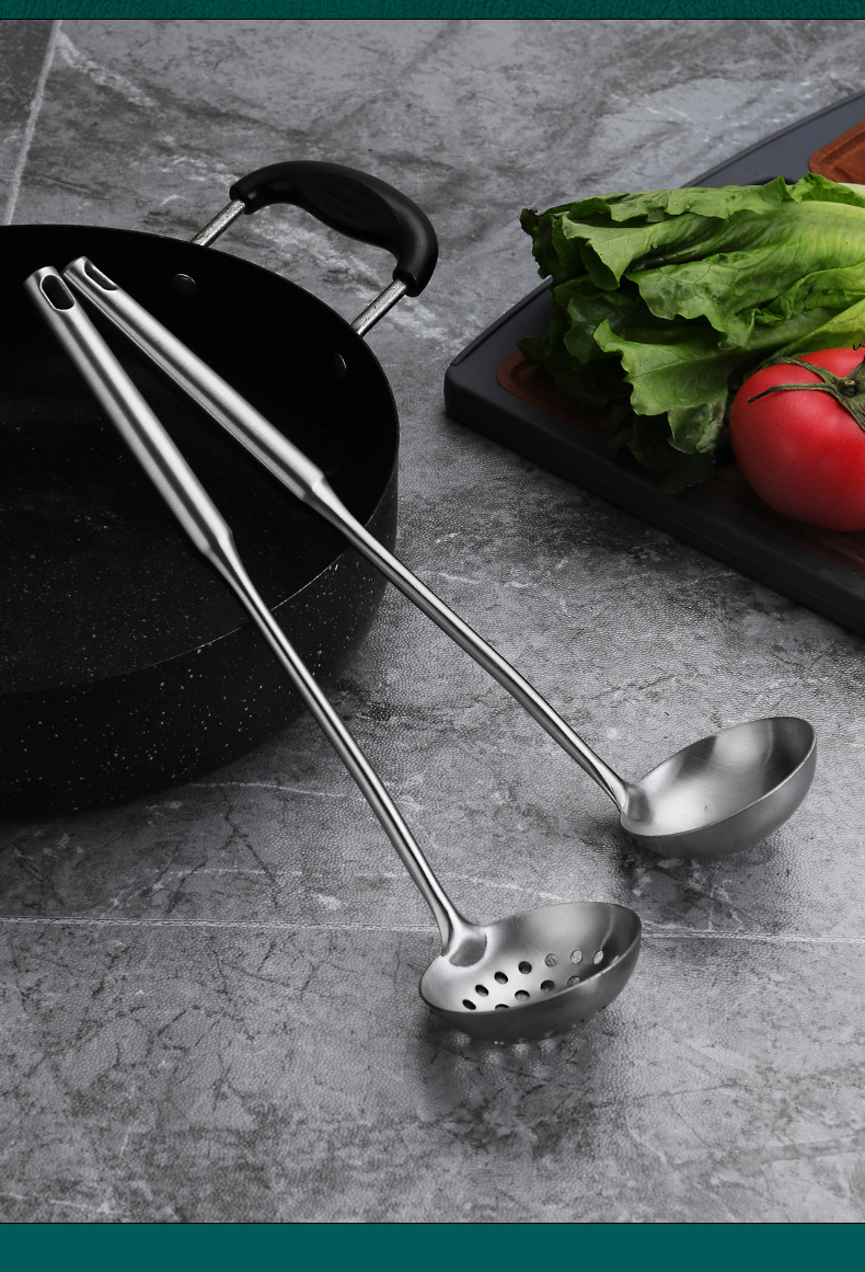 두꺼운 스테인레스 스틸 수프 숟가락 소쿠리 가정용 냄비 숟가락 긴 손잡이 큰 숟가락 죽 숟가락 필터 숟가락