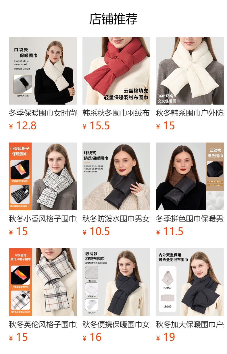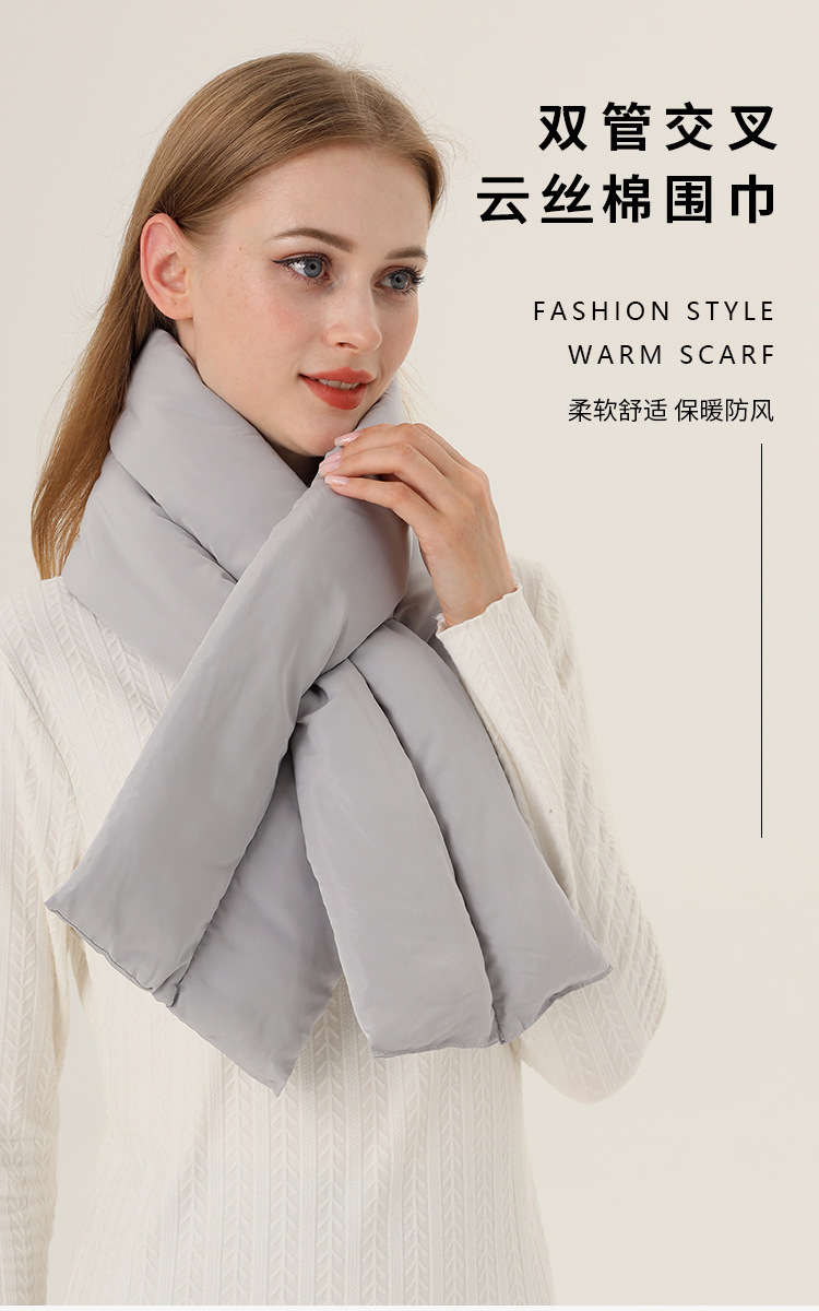 여성용 겨울 따뜻한 크로스 스카프, 남성용 두꺼운 한국식 스카프, 야외 방한 패셔너블한 단색 방풍 다운 스카프스토어 가기