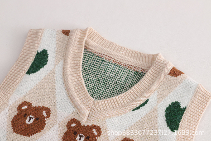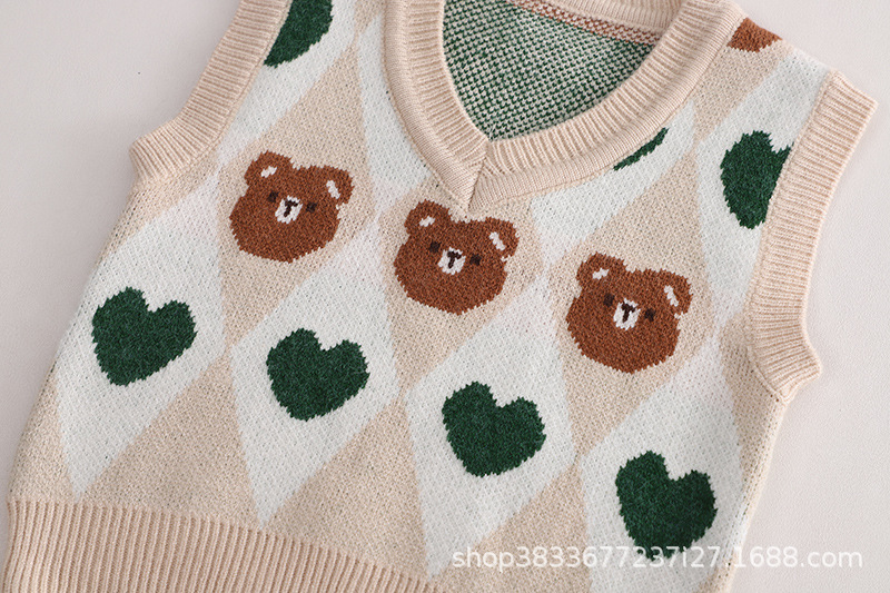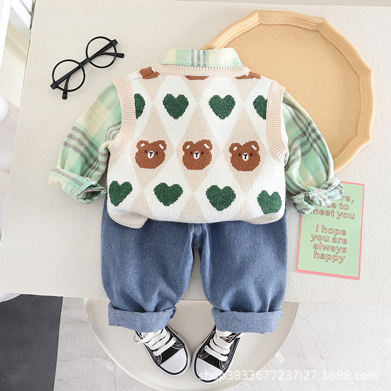 소년 사랑 곰 스웨터 조끼 3 피스 2023 가을 새 소년 한국 옷 머리카락 세대스토어 가기