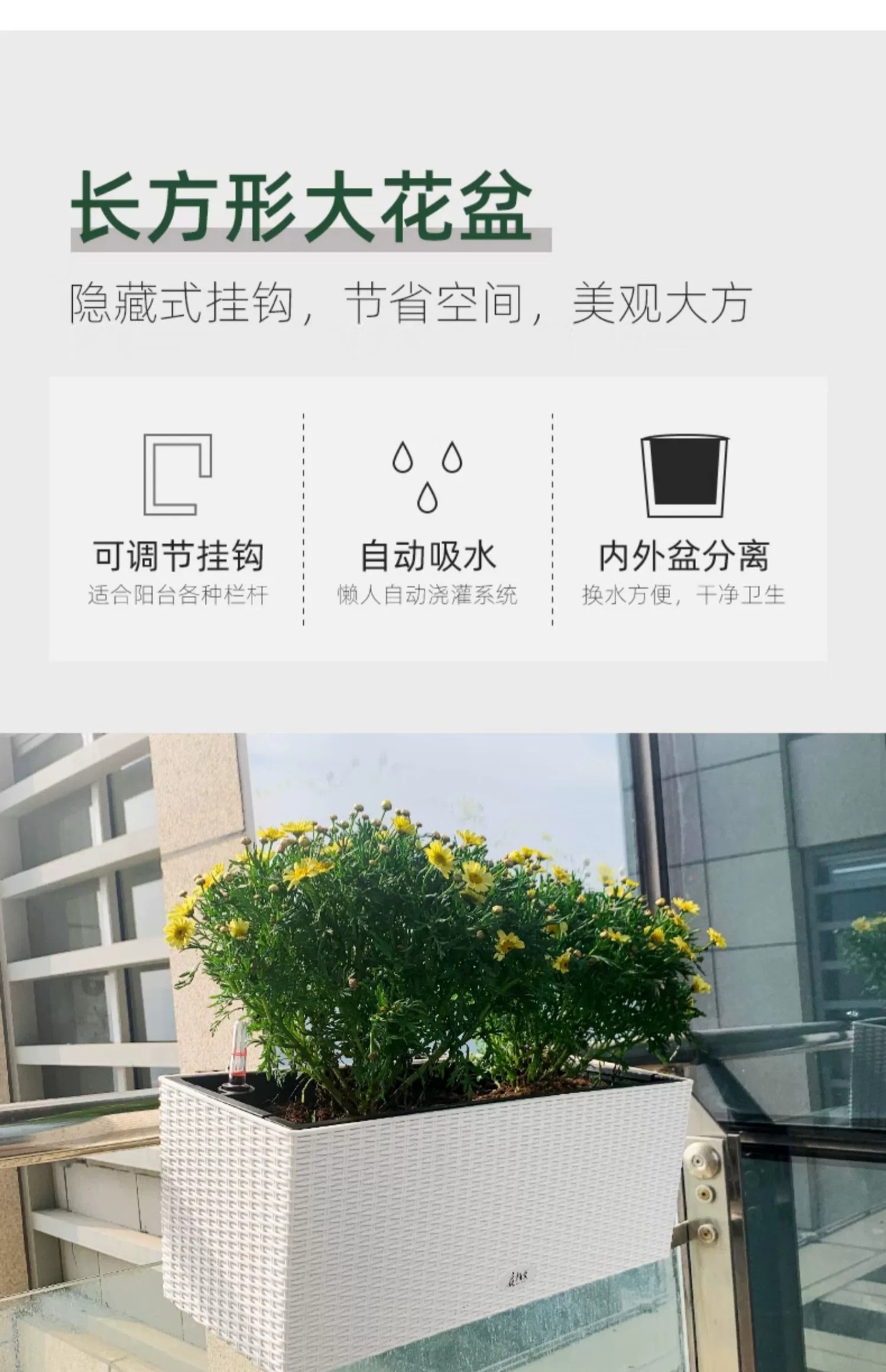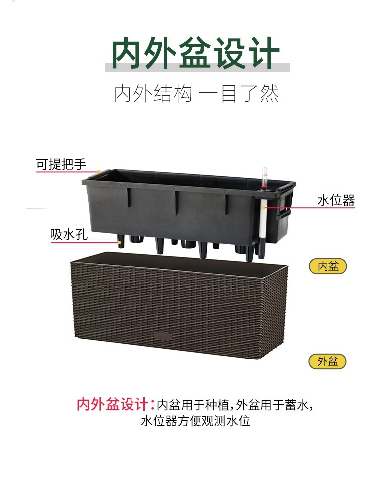 공장 직공급 발코니 화분 직사각형 등나무 난간 교수형 자기 흡수 야채 발코니 화분 도매
