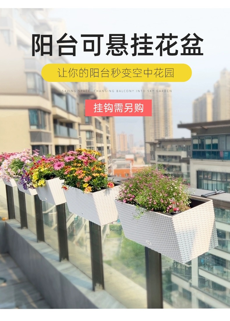 공장 직공급 발코니 화분 직사각형 등나무 난간 교수형 자기 흡수 야채 발코니 화분 도매스토어 가기