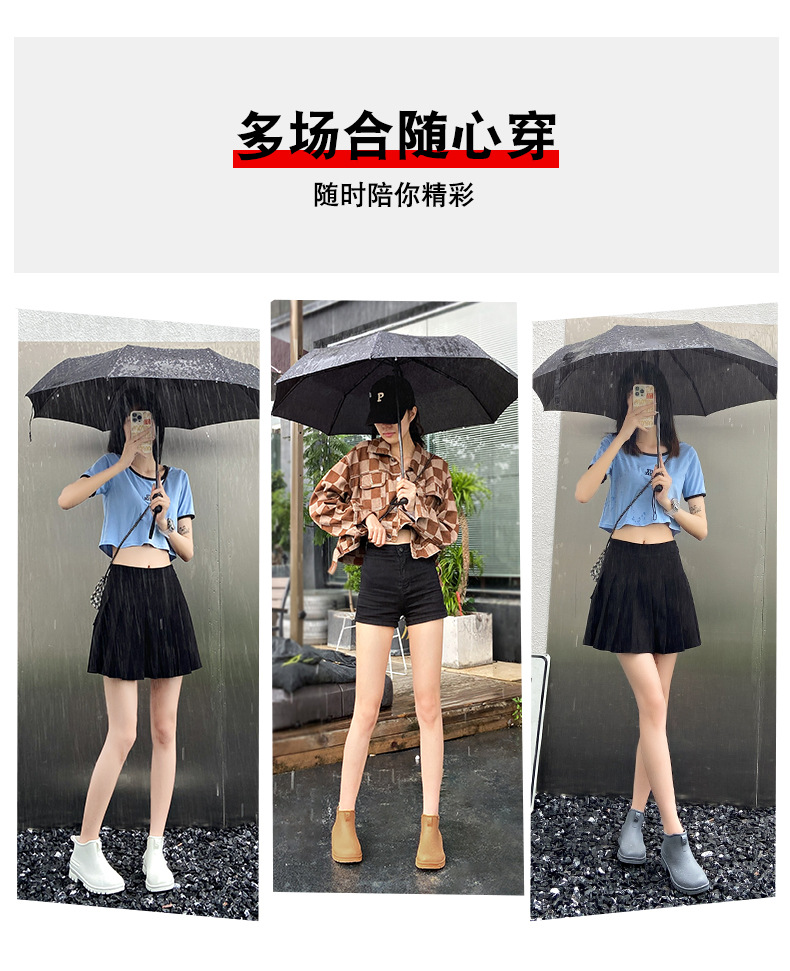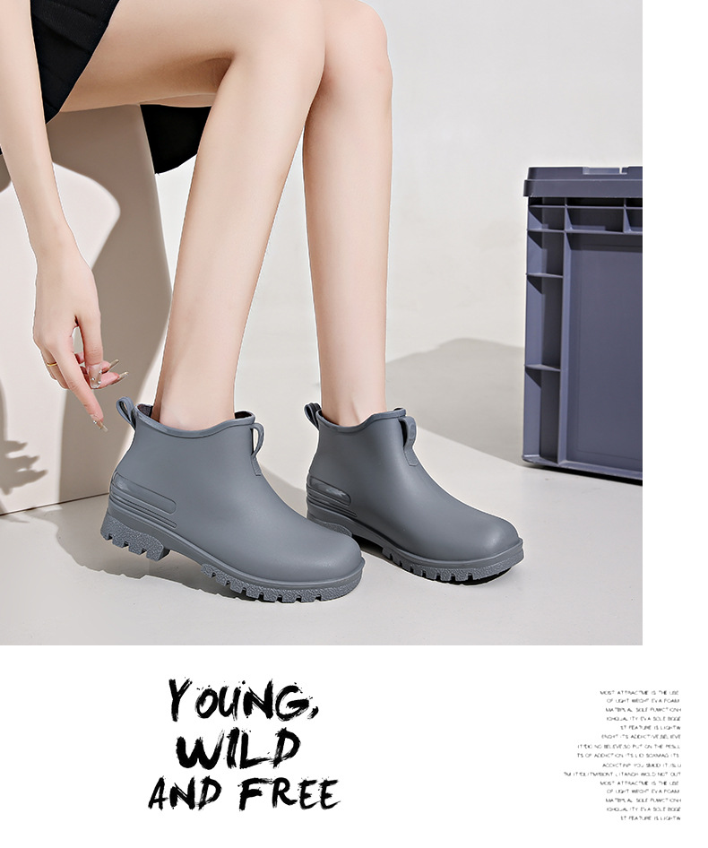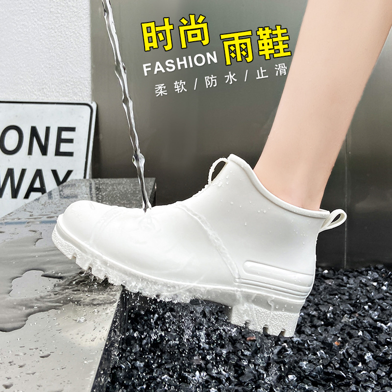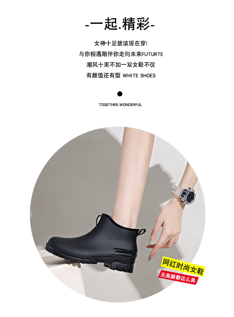 일본과 한국의 신상품 숏부츠 여성용 패션 레인부츠 두꺼운 밑창 내구성 방수 미끄럼 방지 플러스 벨벳 레인슈즈 여성용스토어 가기