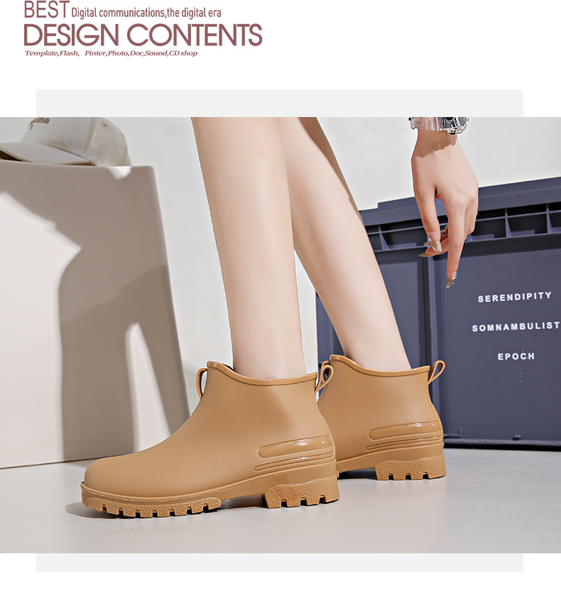 일본과 한국의 신상품 숏부츠 여성용 패션 레인부츠 두꺼운 밑창 내구성 방수 미끄럼 방지 플러스 벨벳 레인슈즈 여성용
