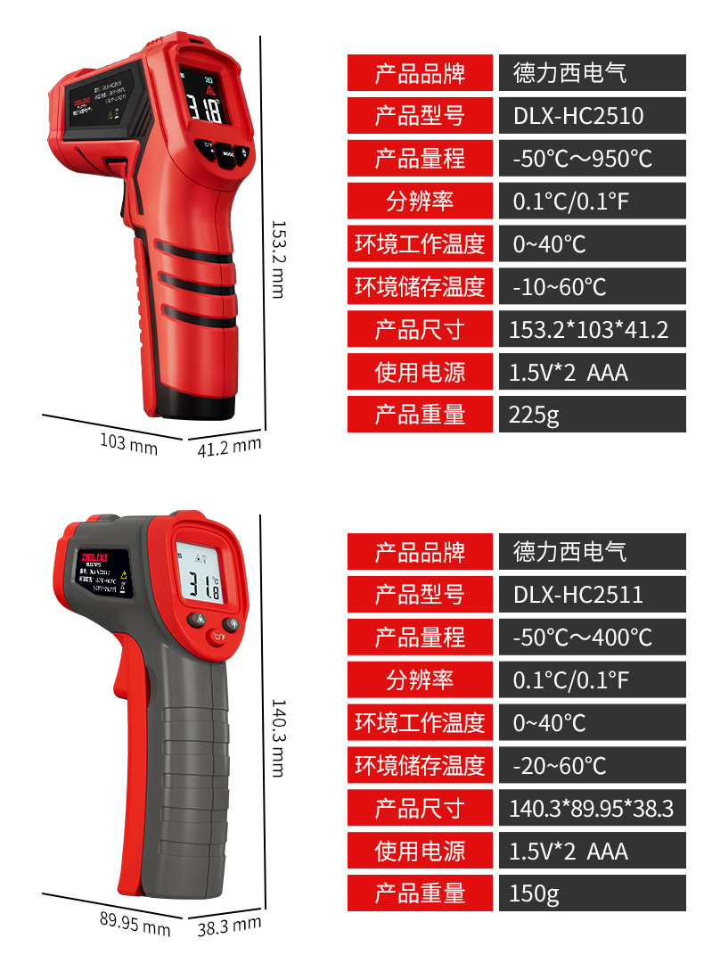 德力西红外测温仪家用烘焙厨房油温枪高温温度计工业测温枪批发