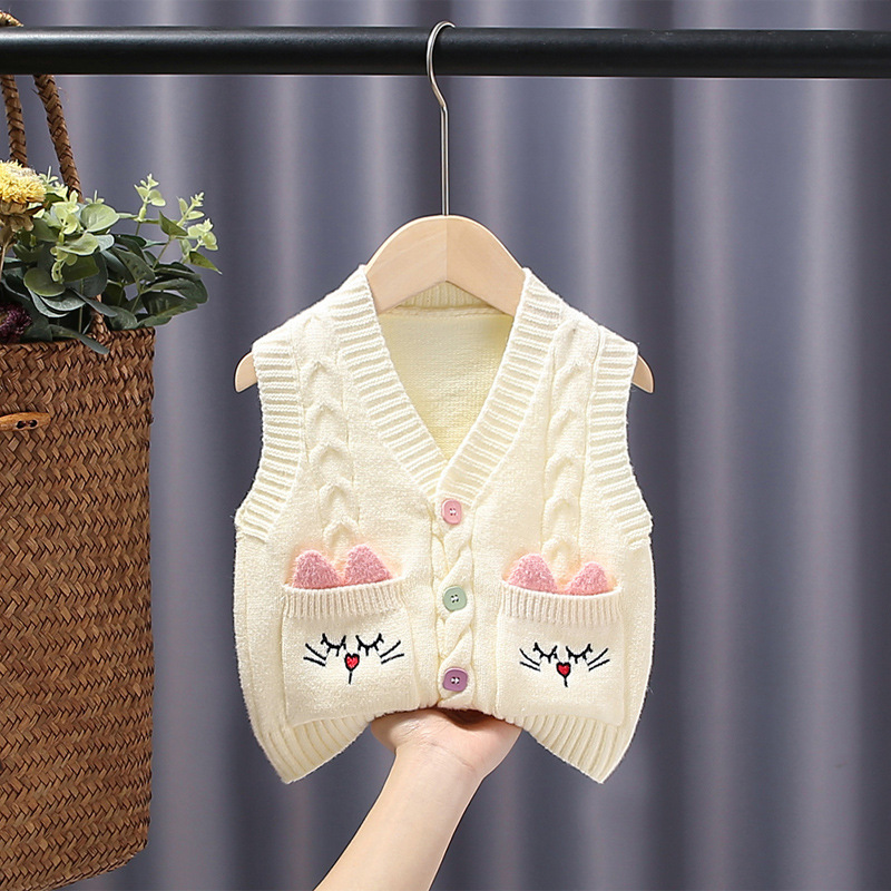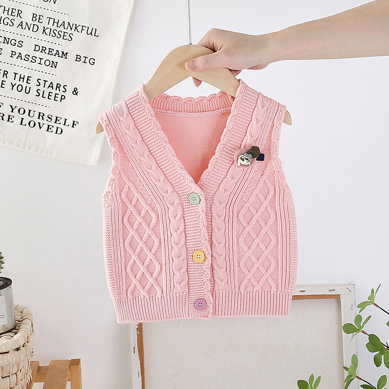 가을과 겨울을위한 아기의 Folio 니트 조끼 아기의 겉옷 단색 트위스트 조끼 작은 어린이 조랑말 클립 코트스토어 가기