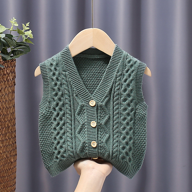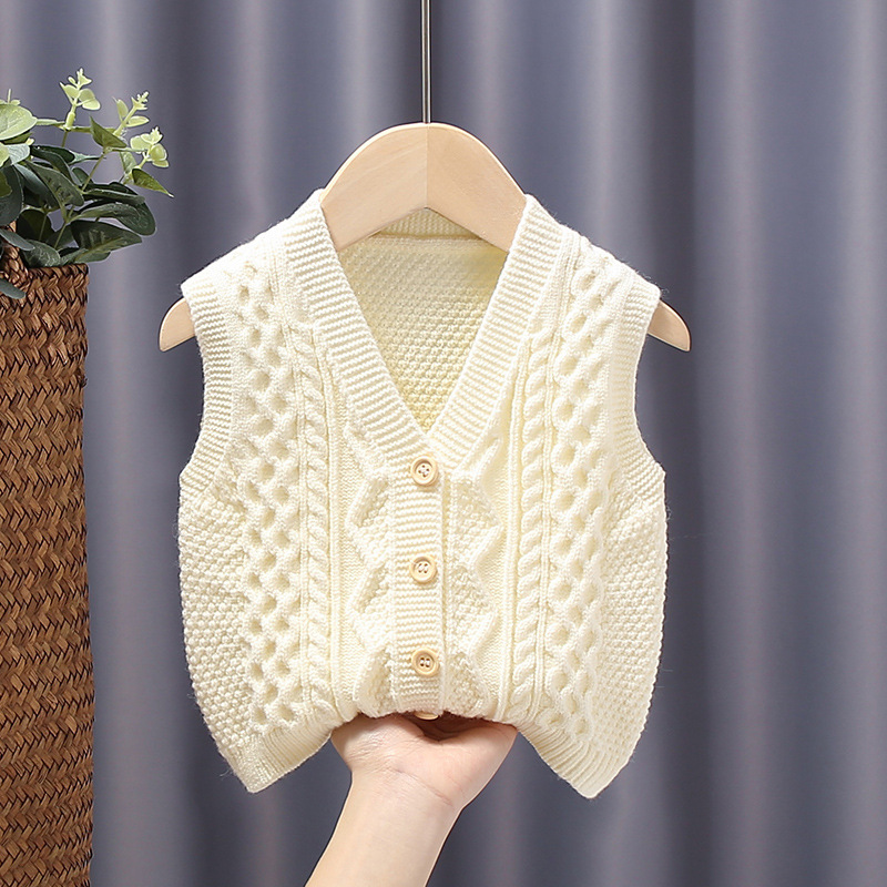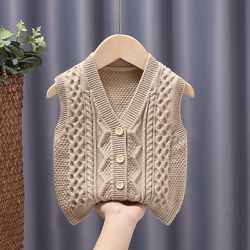 가을과 겨울을위한 아기의 Folio 니트 조끼 아기의 겉옷 단색 트위스트 조끼 작은 어린이 조랑말 클립 코트