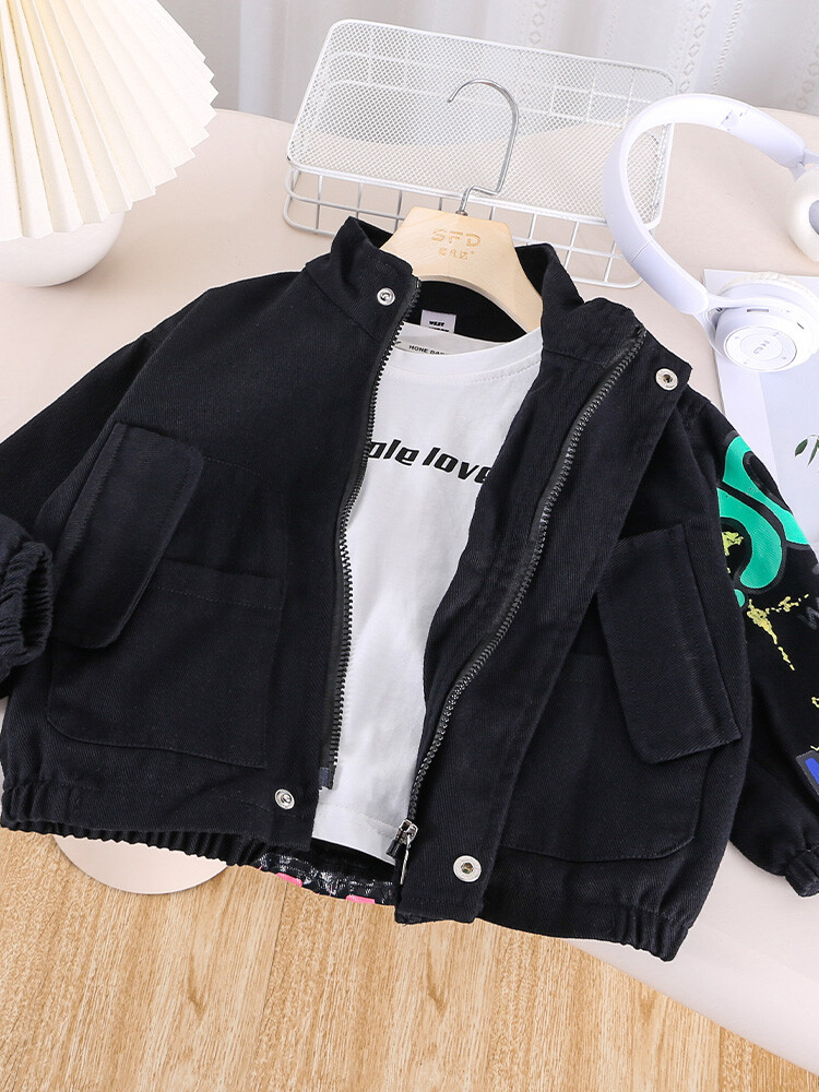 소년 낙서 코튼 코트 2023 봄과 가을 새로운 어린이 잘 생긴 재킷 중소 어린이 대외 무역 재킷 유행스토어 가기