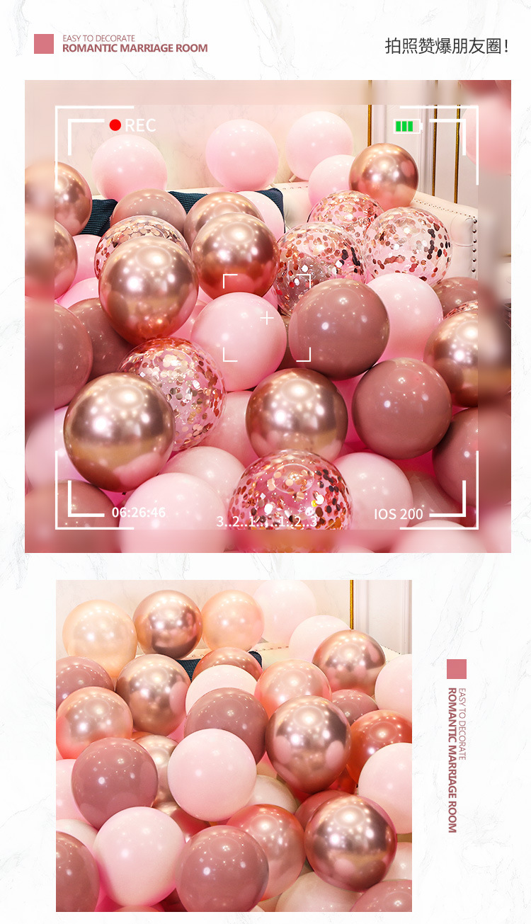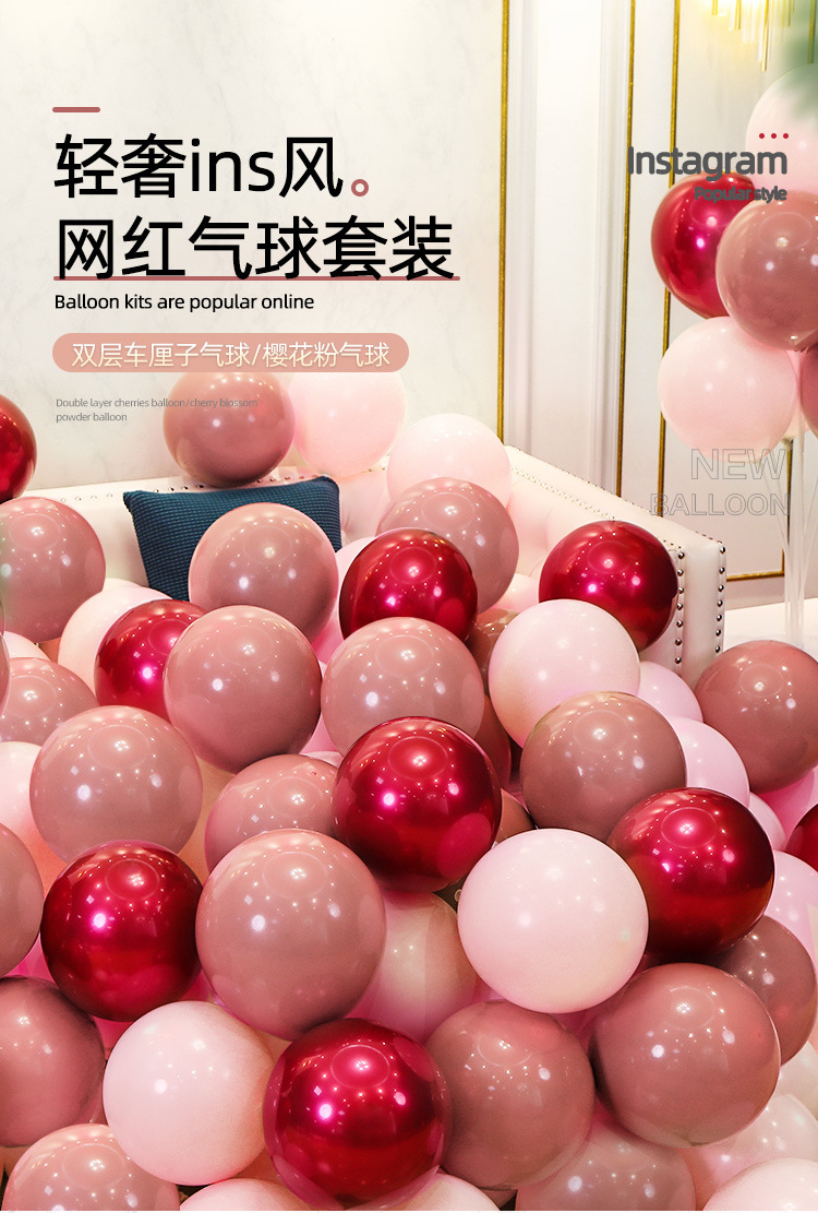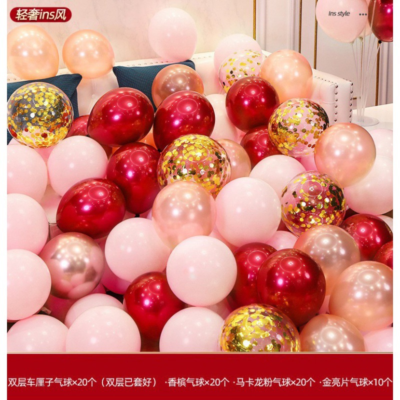 더블 레이어 복고풍 파우더 패키지 웨딩 장식 풍선 체리 핑크 풍선 웨딩 장면 레이아웃 웨딩 룸스토어 가기
