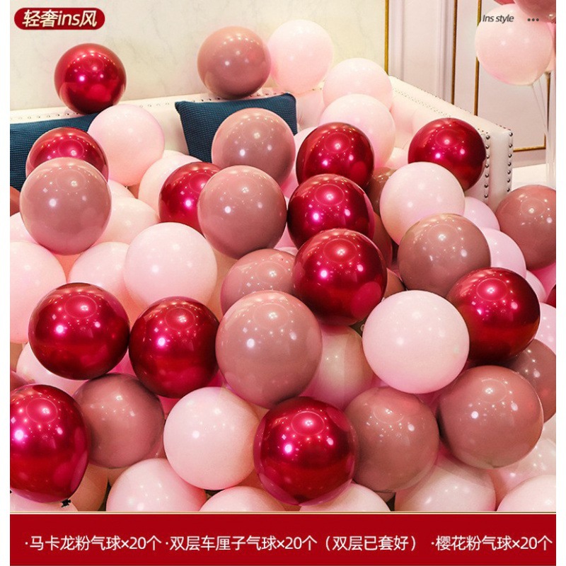 더블 레이어 복고풍 파우더 패키지 웨딩 장식 풍선 체리 핑크 풍선 웨딩 장면 레이아웃 웨딩 룸
