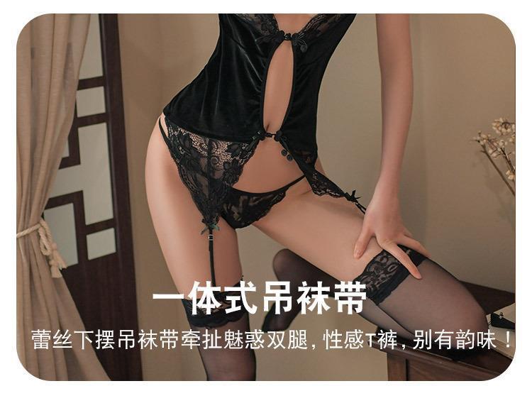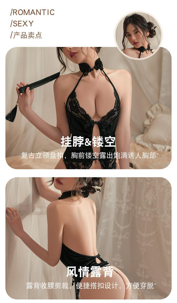 섹시한 복고풍 치파오 섹시한 세트 열정 유니폼 유혹 중공 레이스 침대 놀리는 성인 잠옷 조끼스토어 가기
