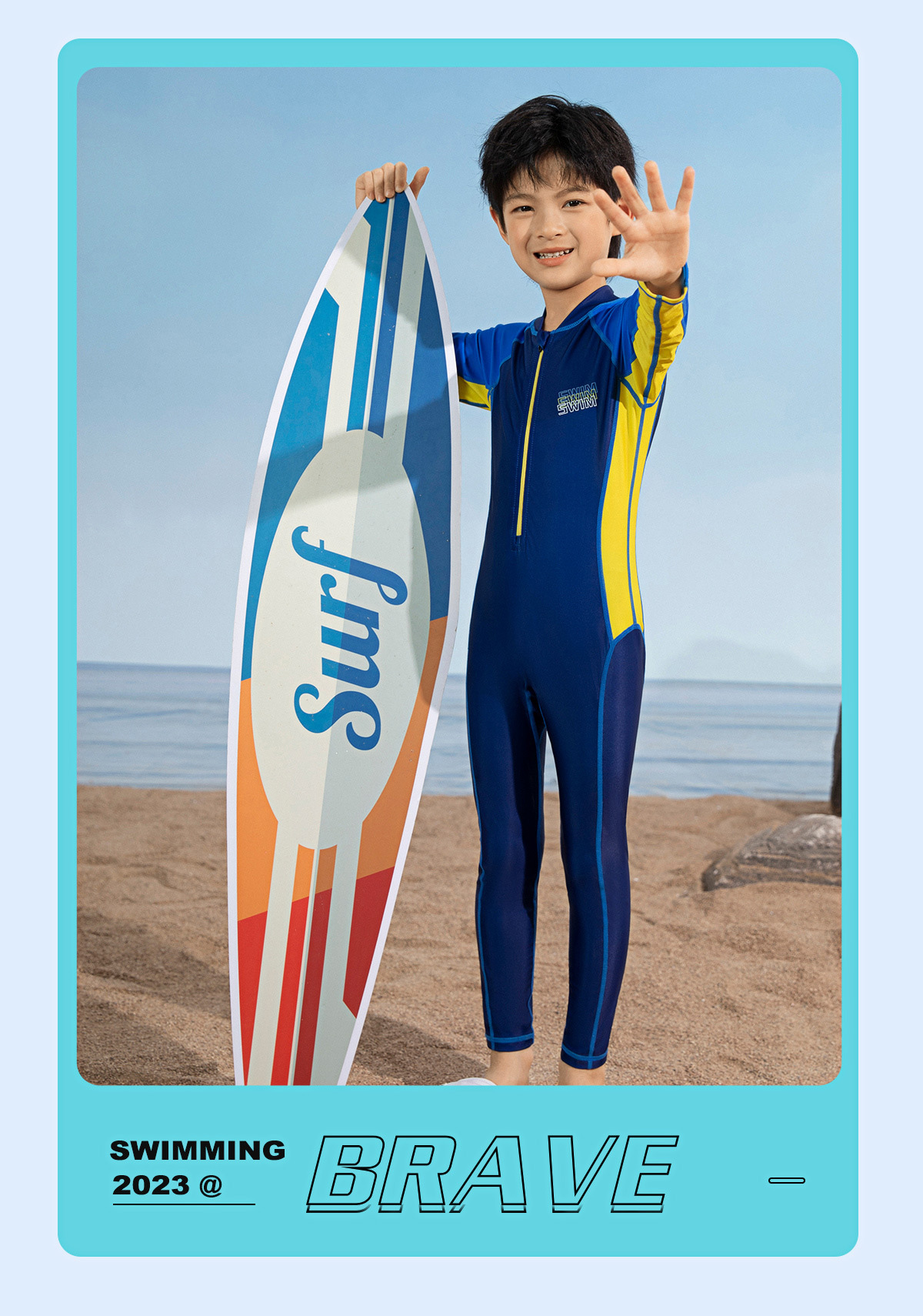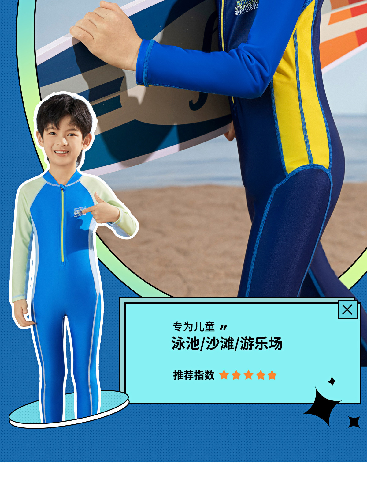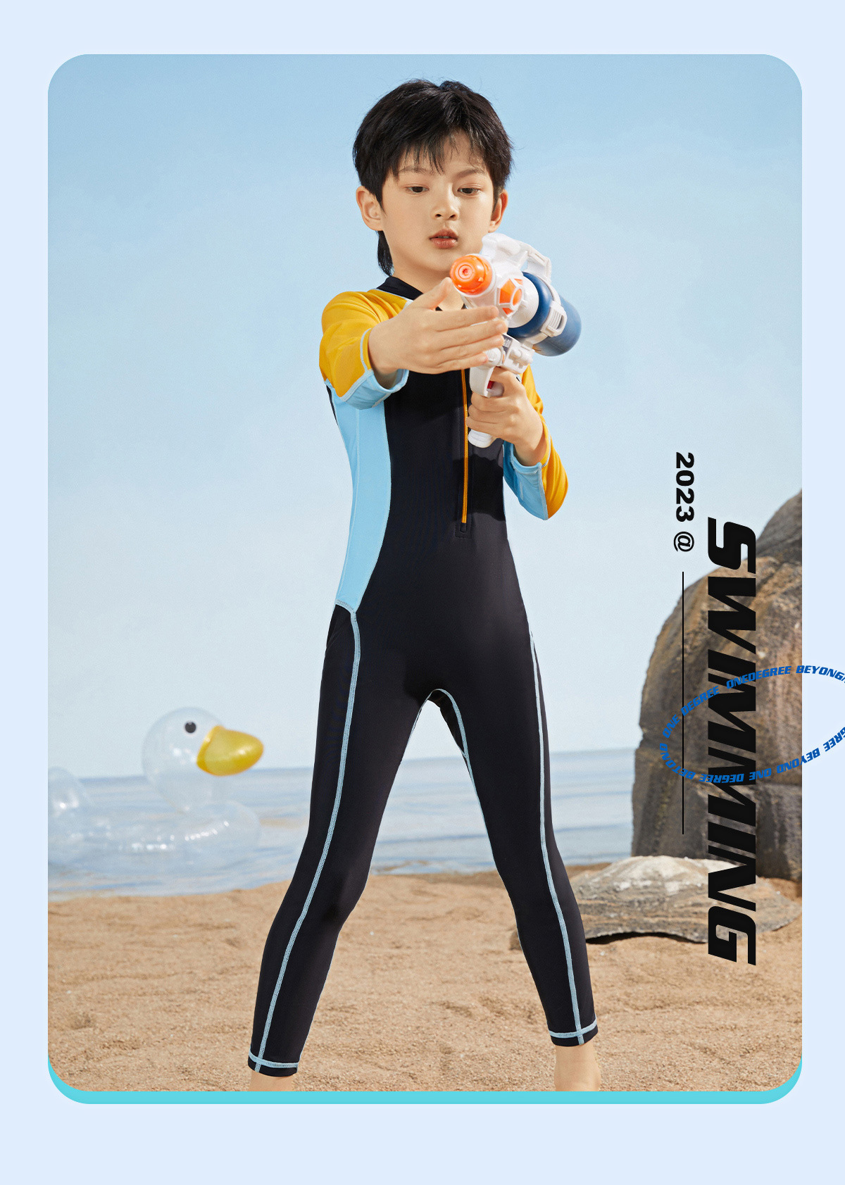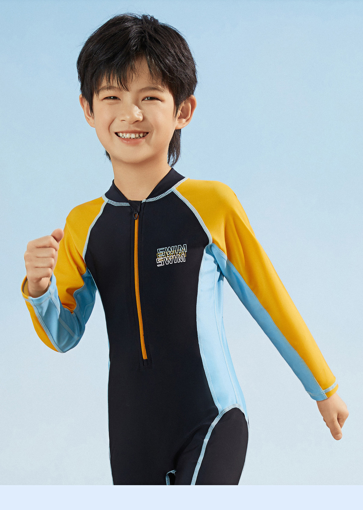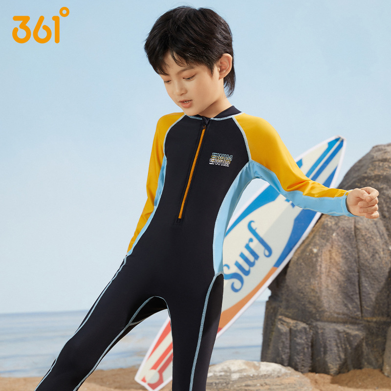 361 어린이 수영복 소년 긴팔 자외선 차단 원피스 소년 수영복 2025 새로운 어린이 중대형 어린이 수영복