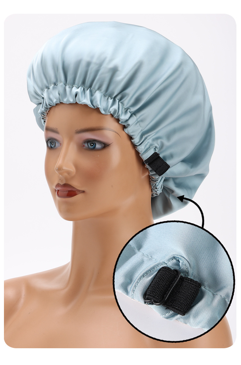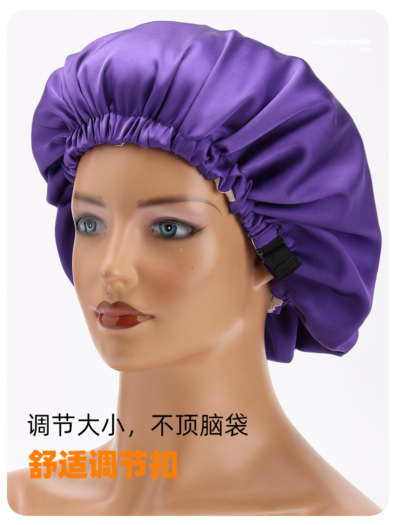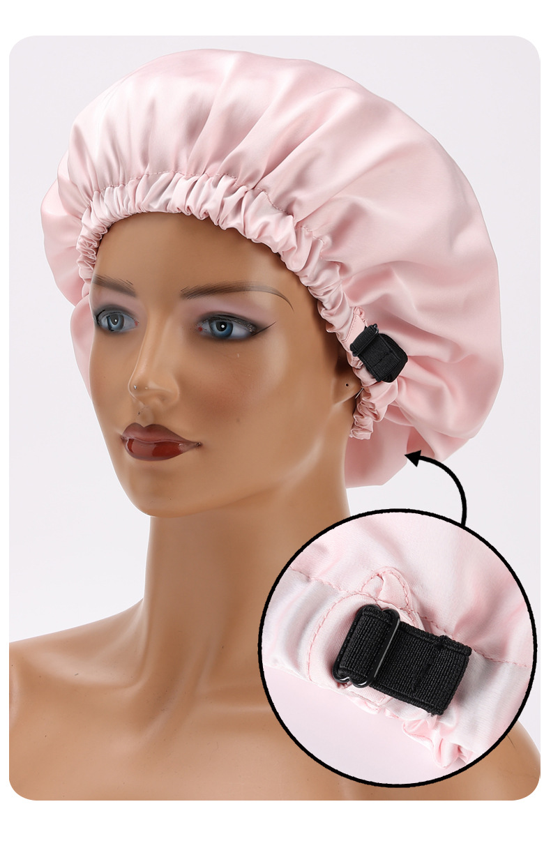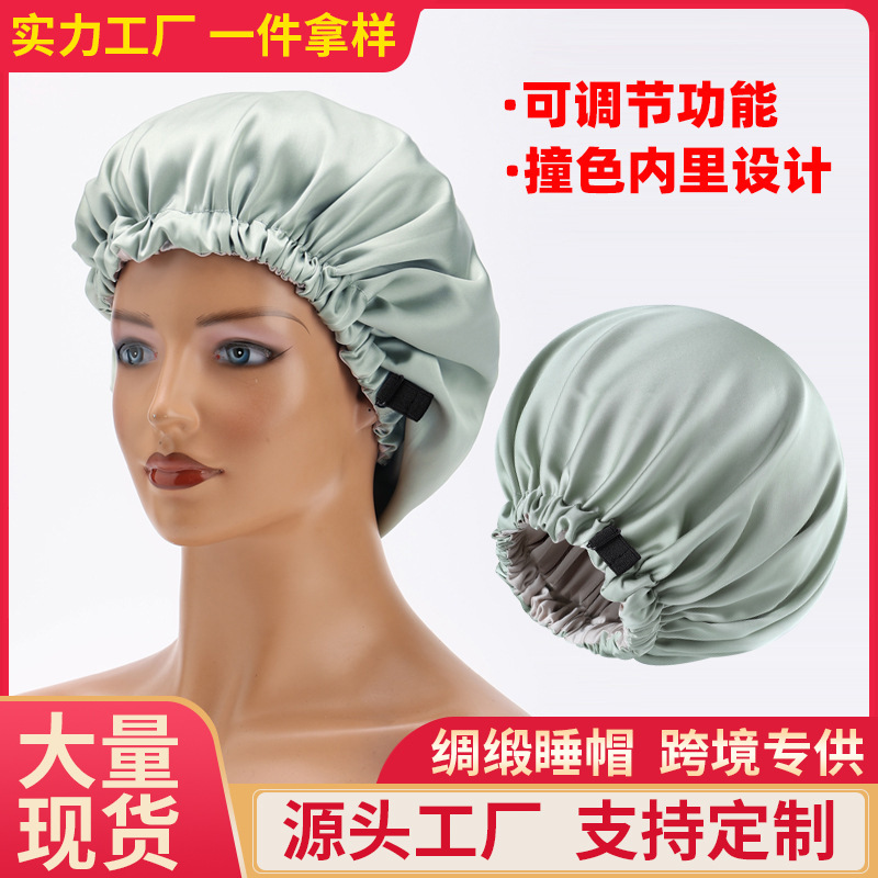 아마존 새틴 더블 레이어 조정 가능한 실크 Nightcap 패션 돔 캡 실크 헤어 케어 모자 문 모자 메이크업 모자